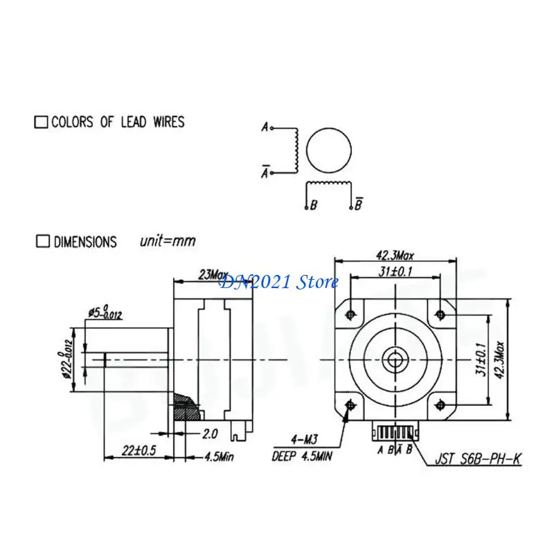 Nombre del producto: motor paso a paso Tamaño: 42x42x23mm Fase: 2 fases 12V Corriente: 0,8 A/fase Resistencia: ± 10%Ω/Fase Inductancia: 3,2 ± 20% Fase Par de sujeción: 16 N.cm Clase de aislamiento: B Paso 1,8±5% /PASO