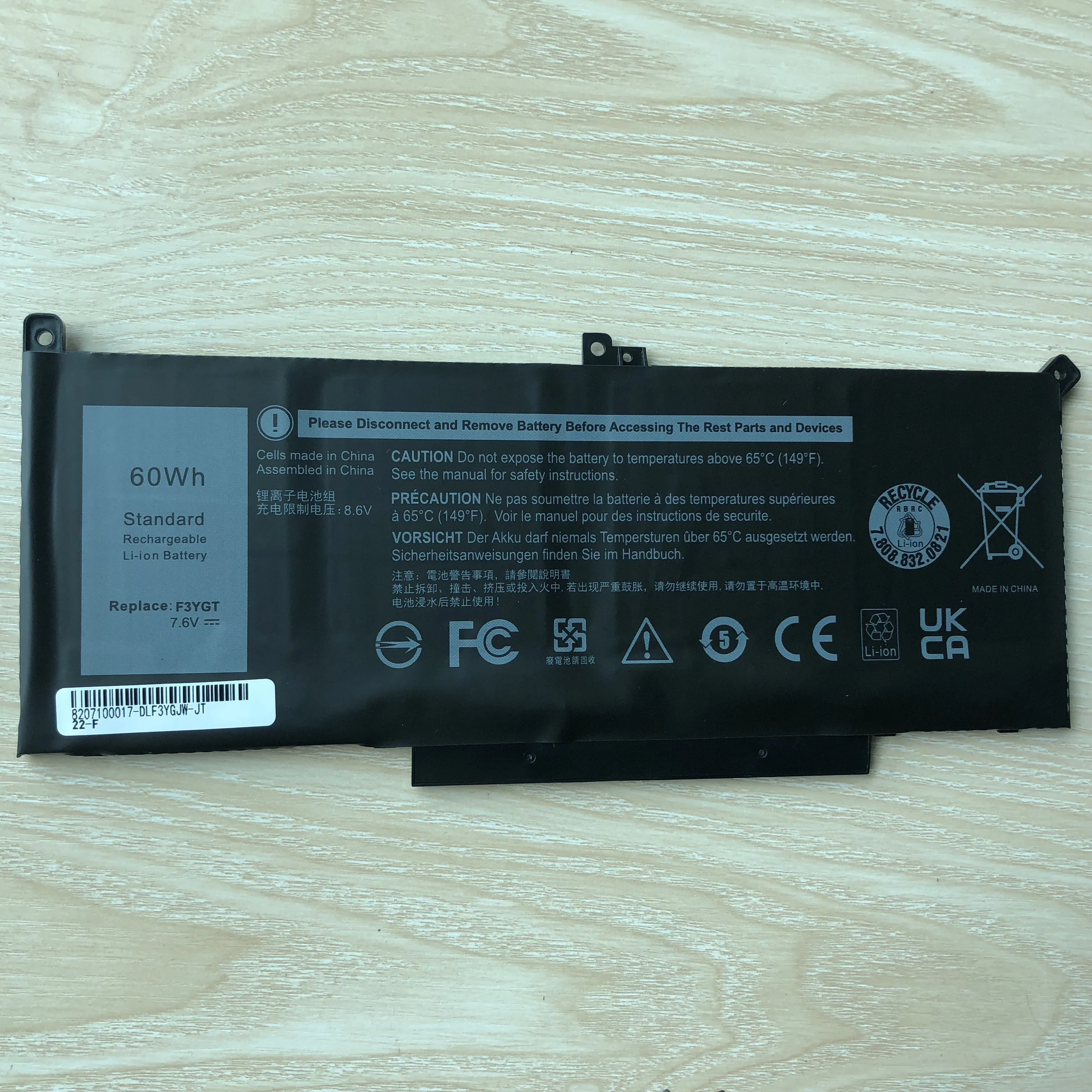 Capacidad: 60WHVoltaje: 7,6V