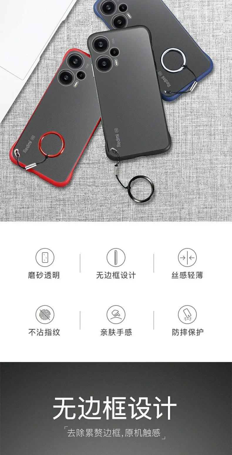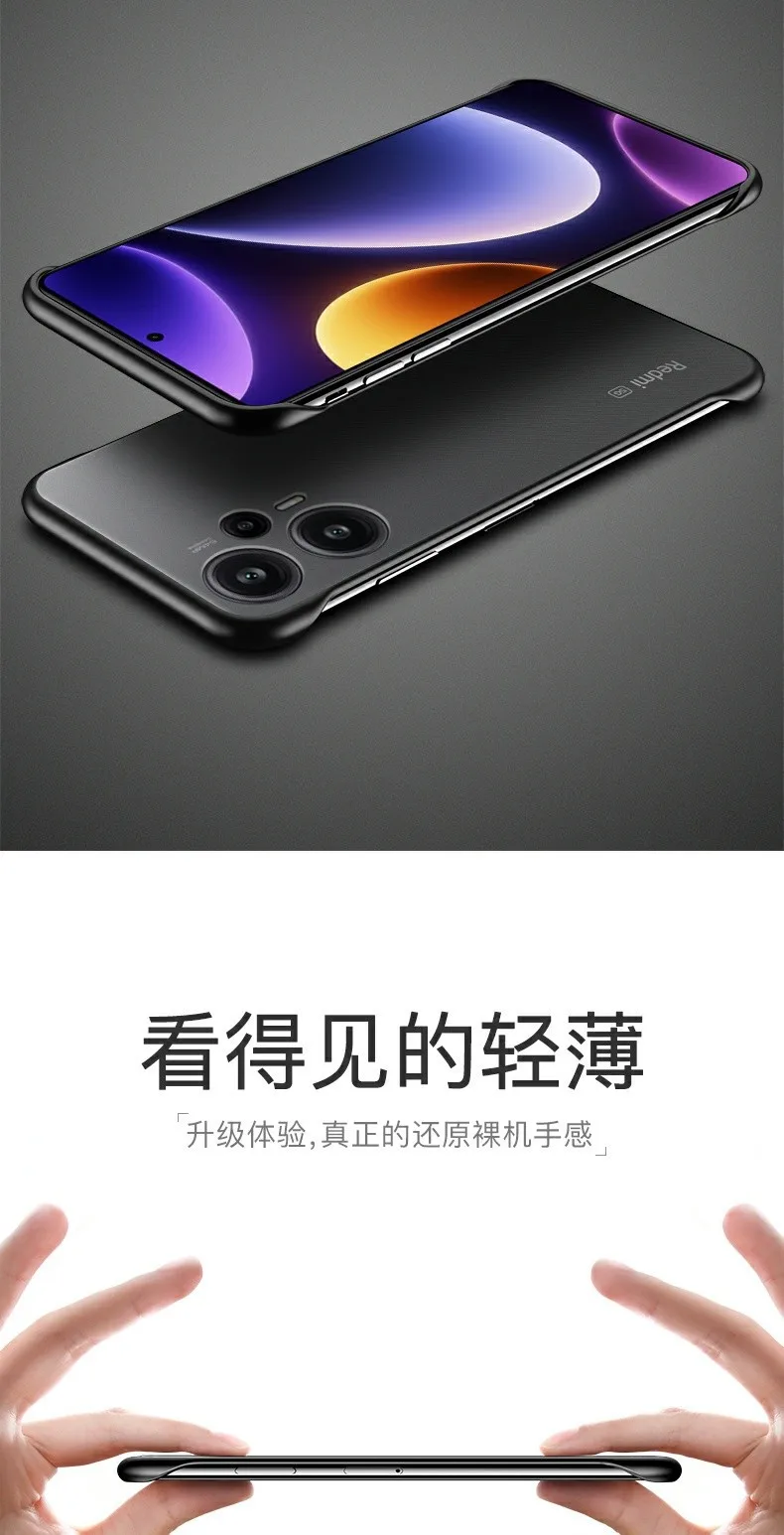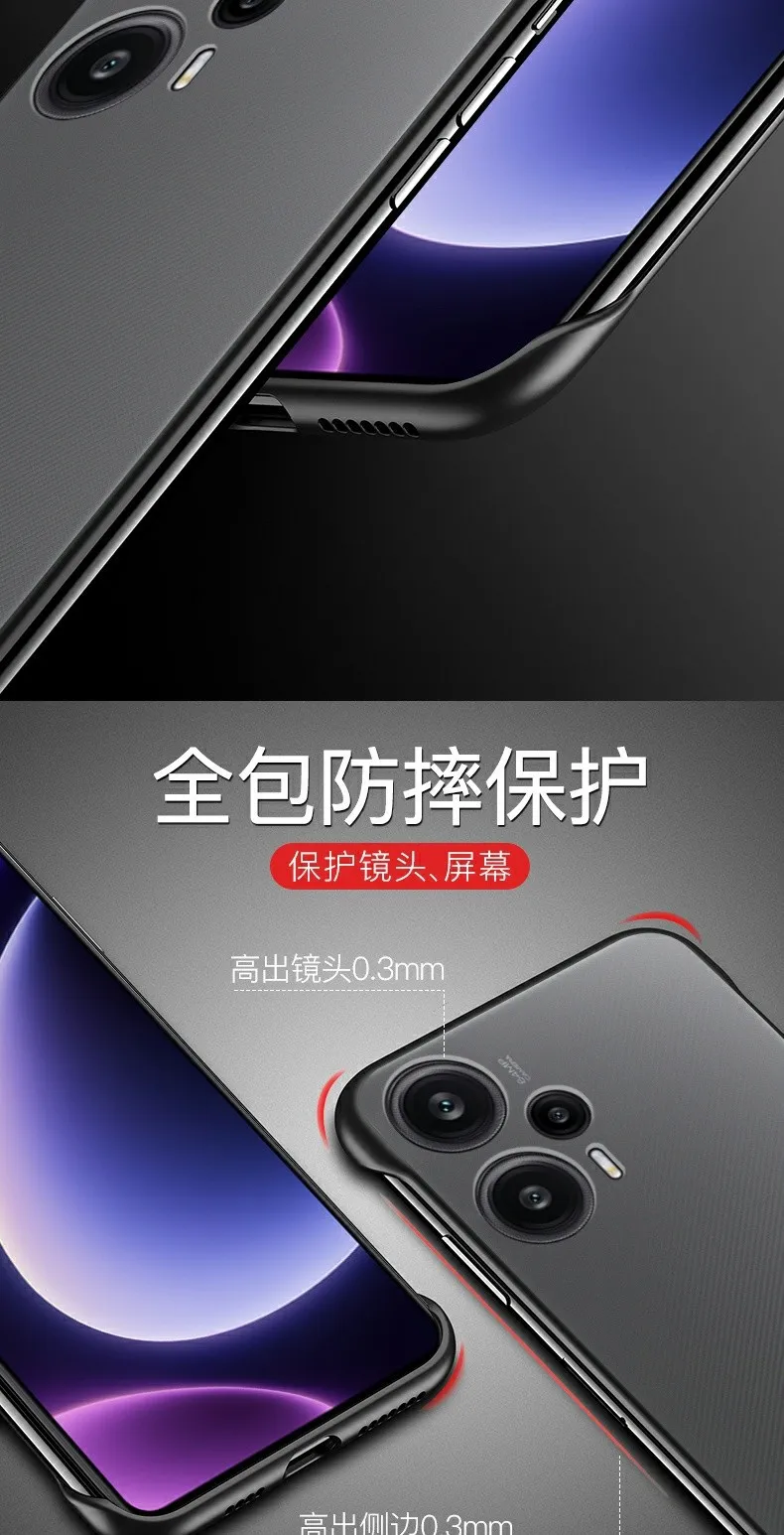 POCO F5 Frameless Phone Case For Xiaomi Poco F 5 5G F5 Pro Redmi Note 12 Turbo Note12 Pro Plus K60 Pro Matte Hard PC Back Cover