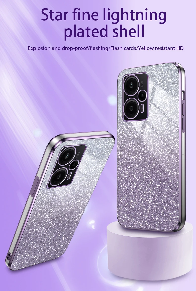 F5pro F 5 4 3 funda de lujo con revestimiento degradado de brillo para Xiaomi Mi Poco F5 Pro 5g Poko F3 F4 funda trasera de silicona a prueba de golpes para mujer