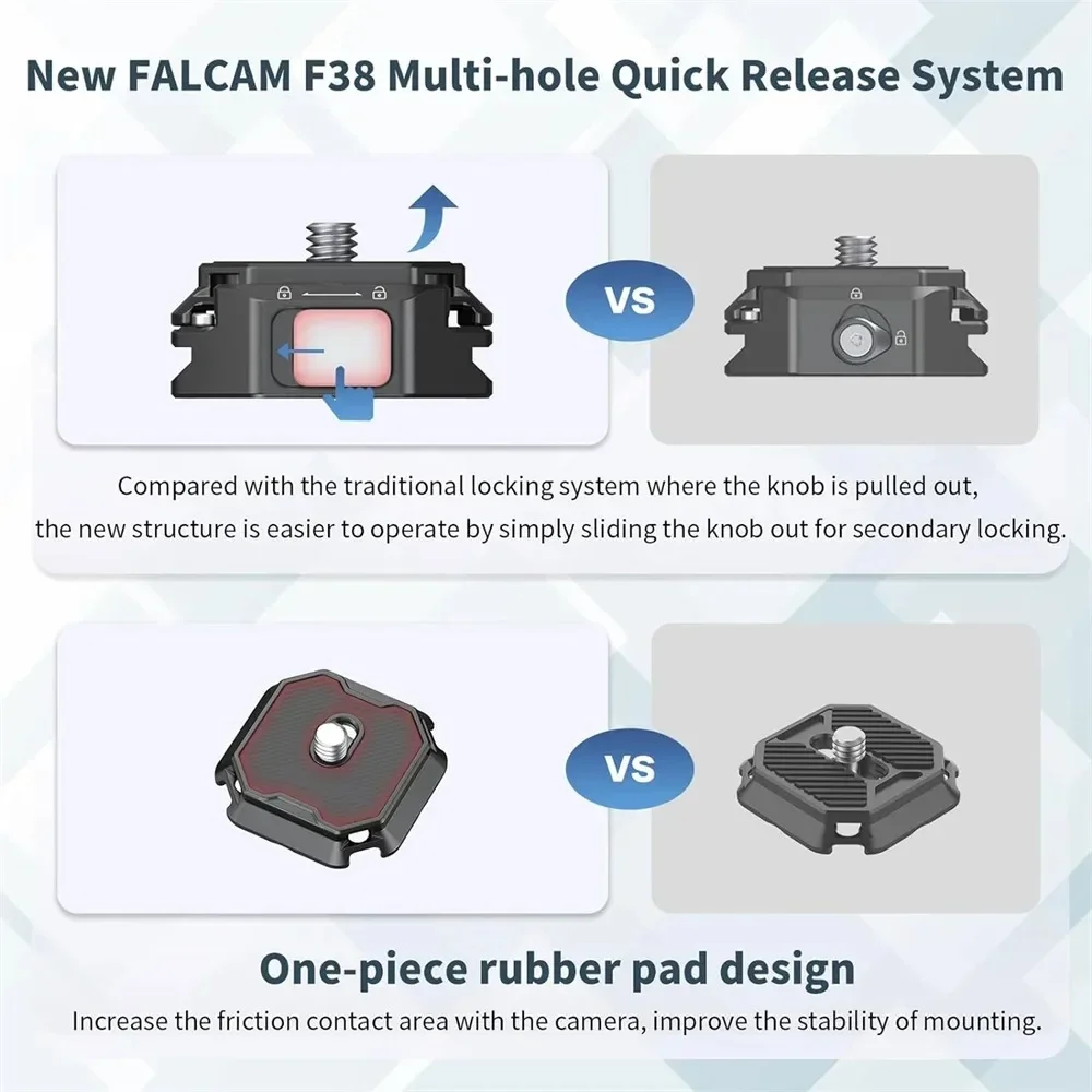 Montaje y desmontaje instantáneo en un solo paso: la serie Falcam F38 integra inteligentemente el antiguo mortaja y espiga chino con una estructura mecánica moderna, un empujón para instalar, una prensa para quitar, fácil y suave.Estructura de alta resistencia estable y firme.