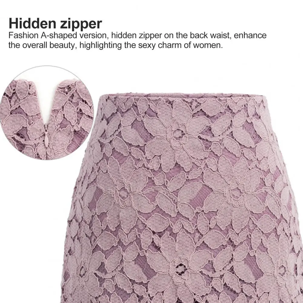 Adoptando un diseño de superficie de encaje hueco, esta falda es muy elegante y popular. Será más elegante y temperamental con esta falda. El diseño de felpa te mantiene caliente en invierno.
