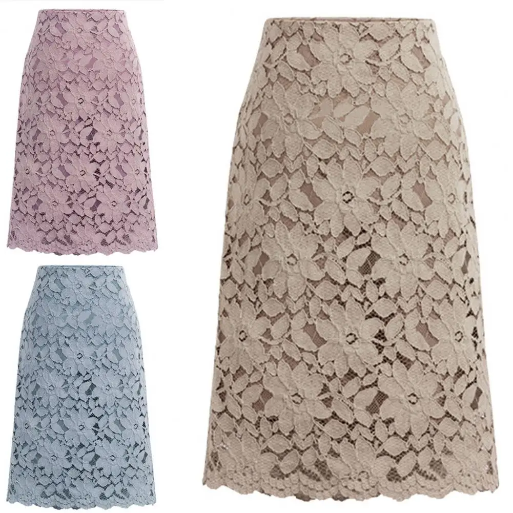 Comprar Falda ajustada de encaje de Color sólido para mujer, moda