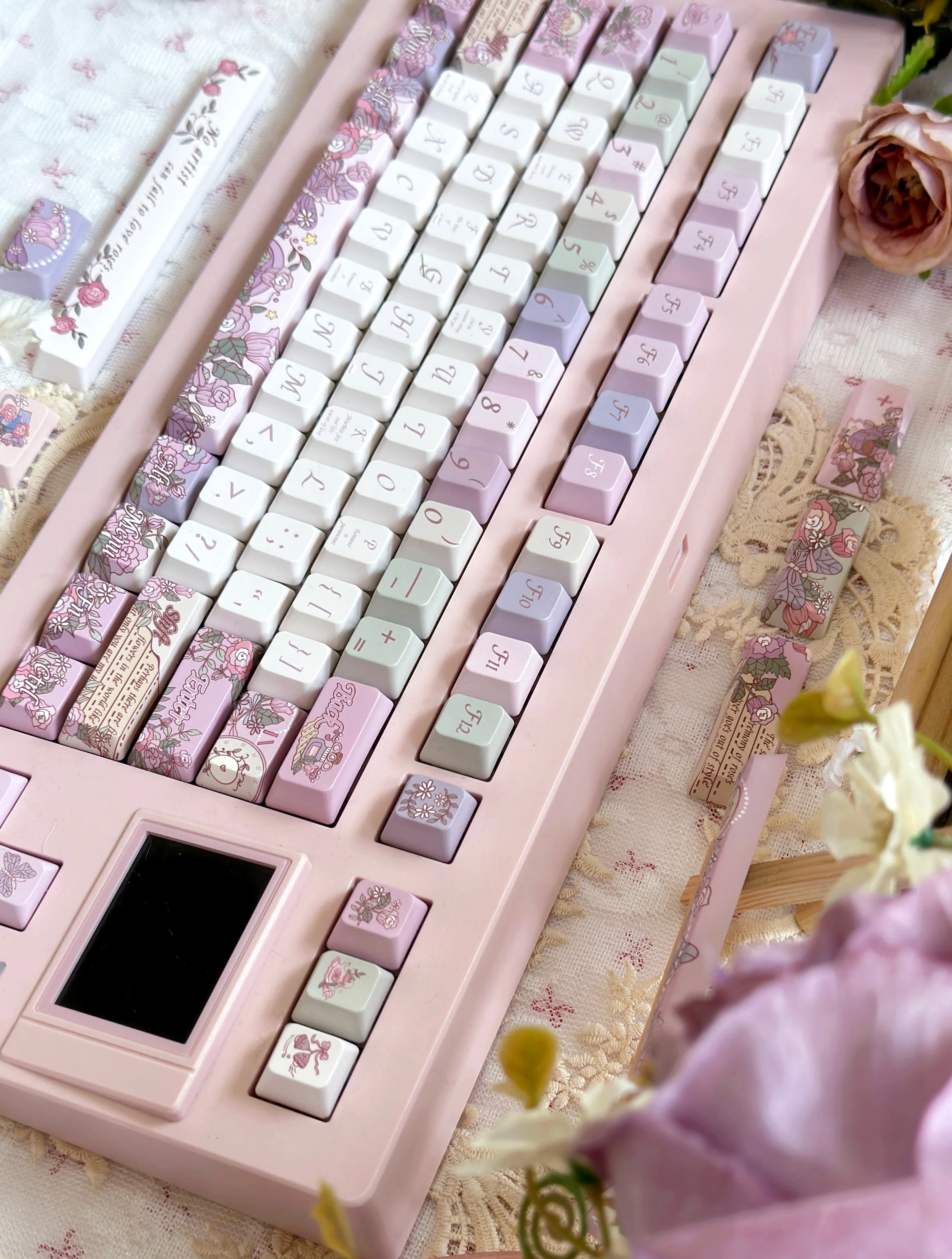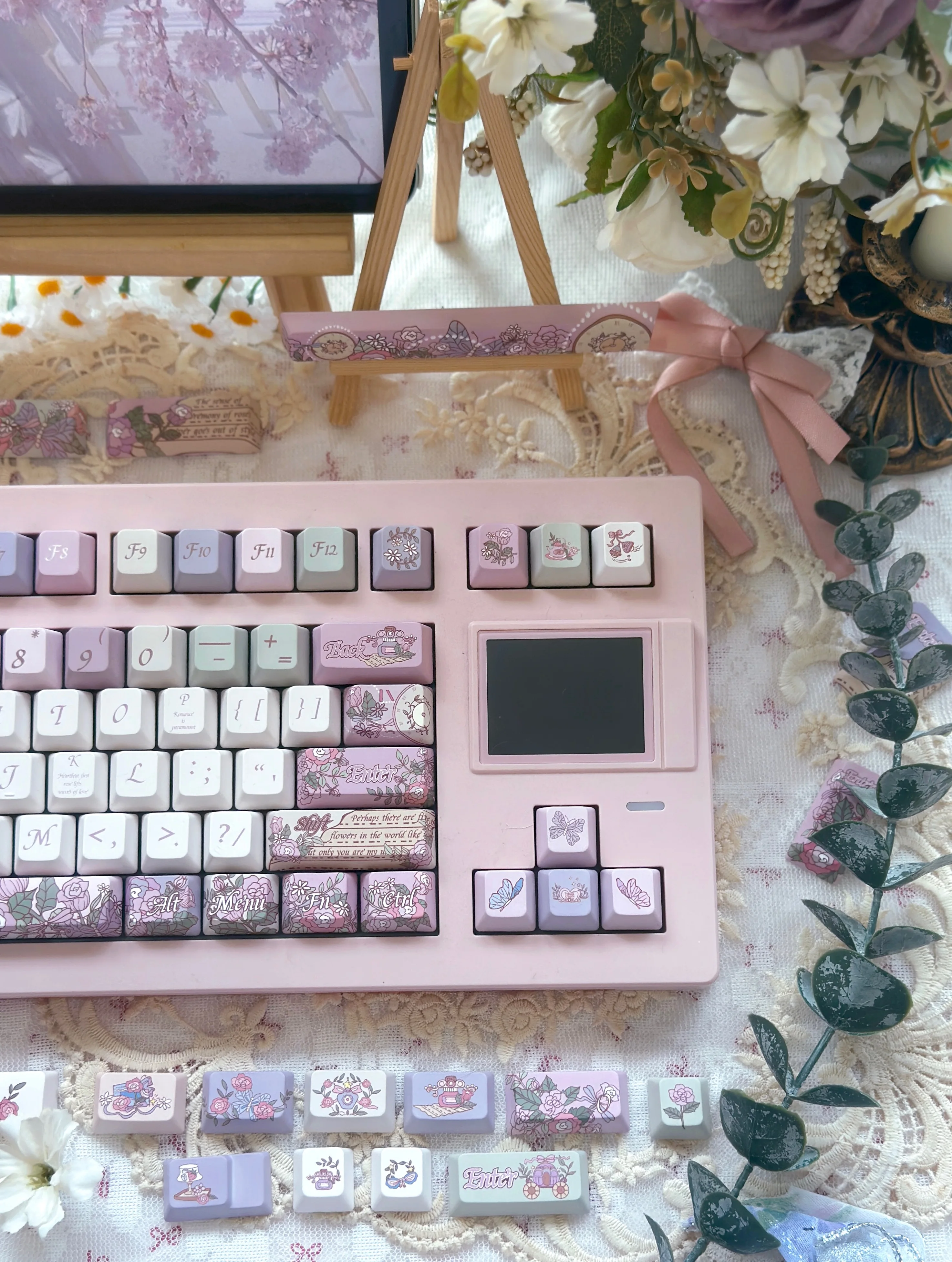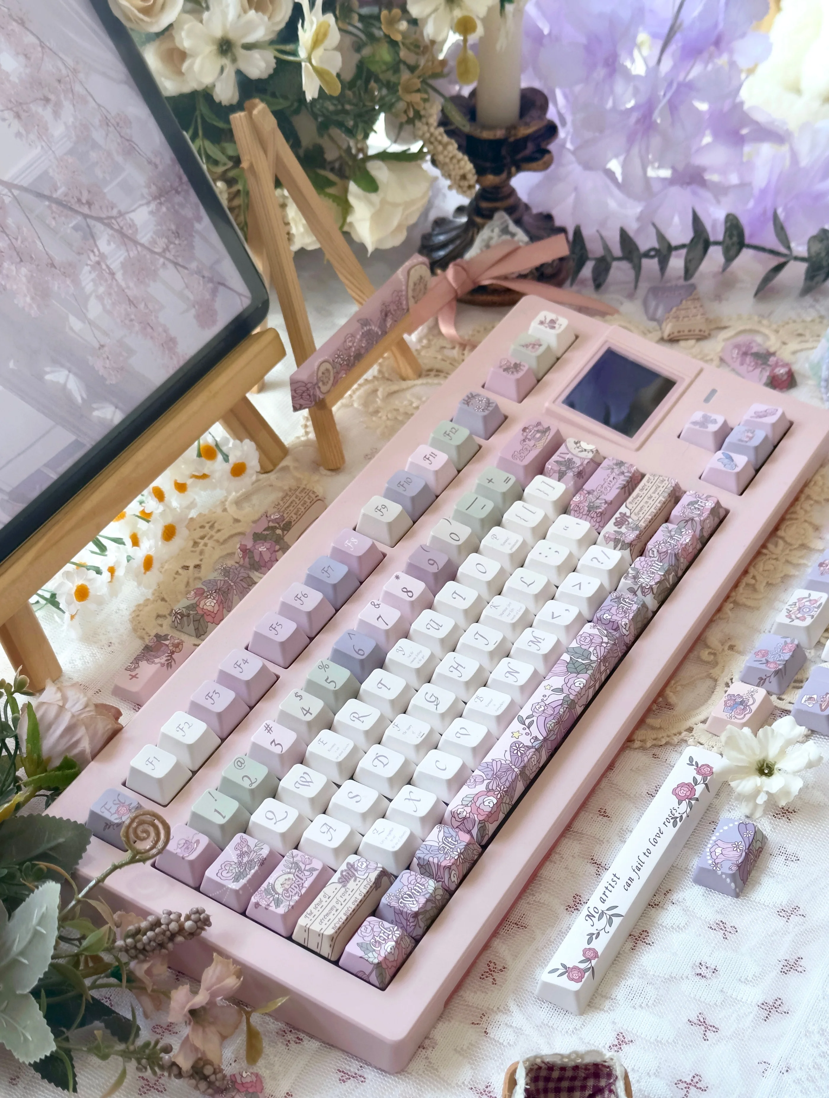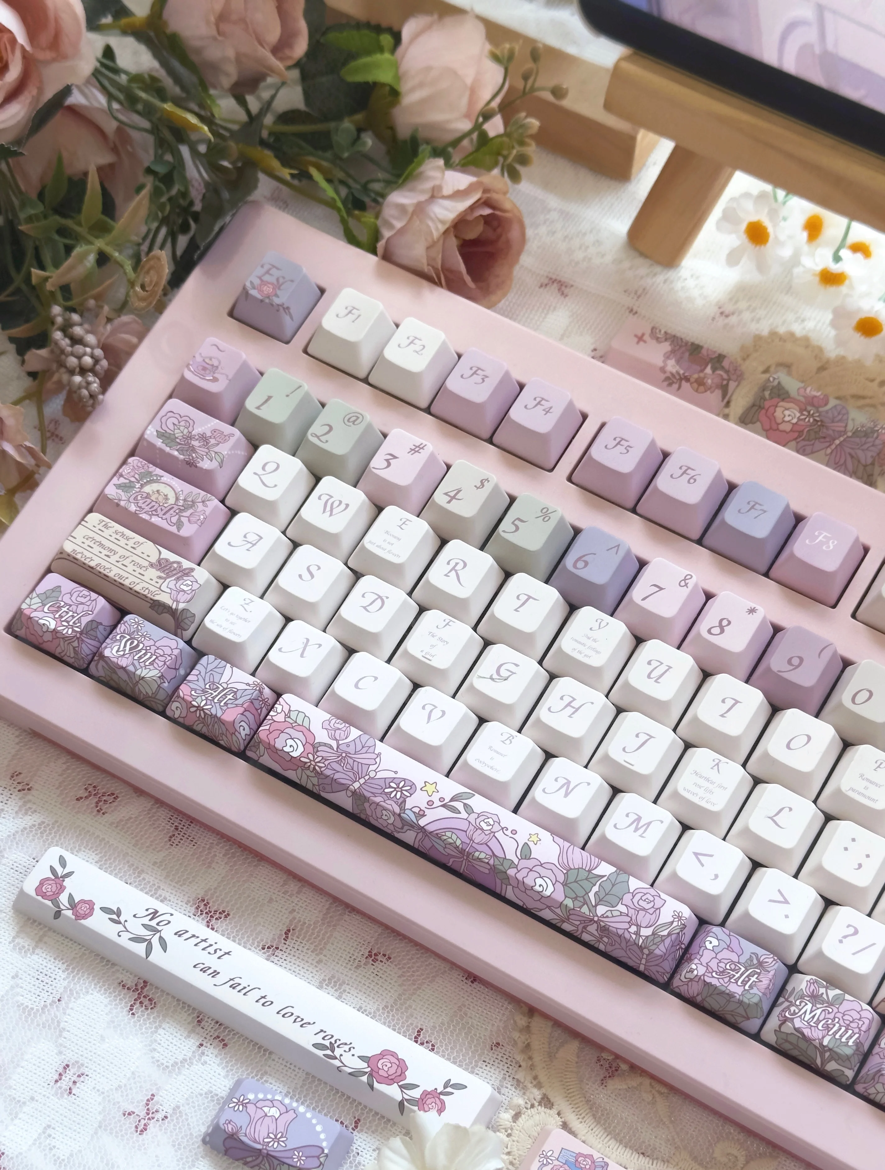 Fancce Ballet of Time Keycaps Custom PBT Cherry Profile Transparent Keycap Cute Rose Cartoon Anime Point Key Caps for Gamers