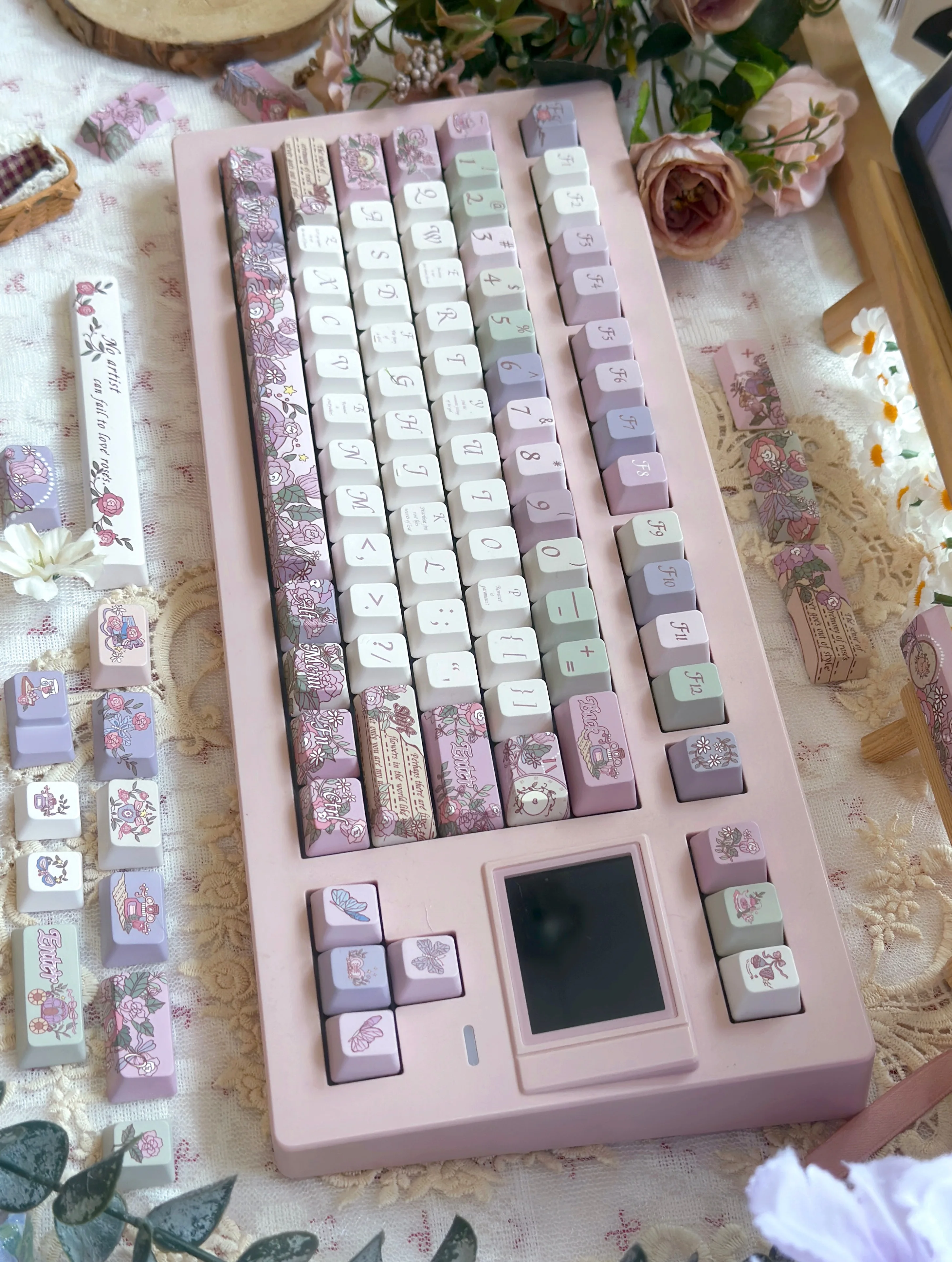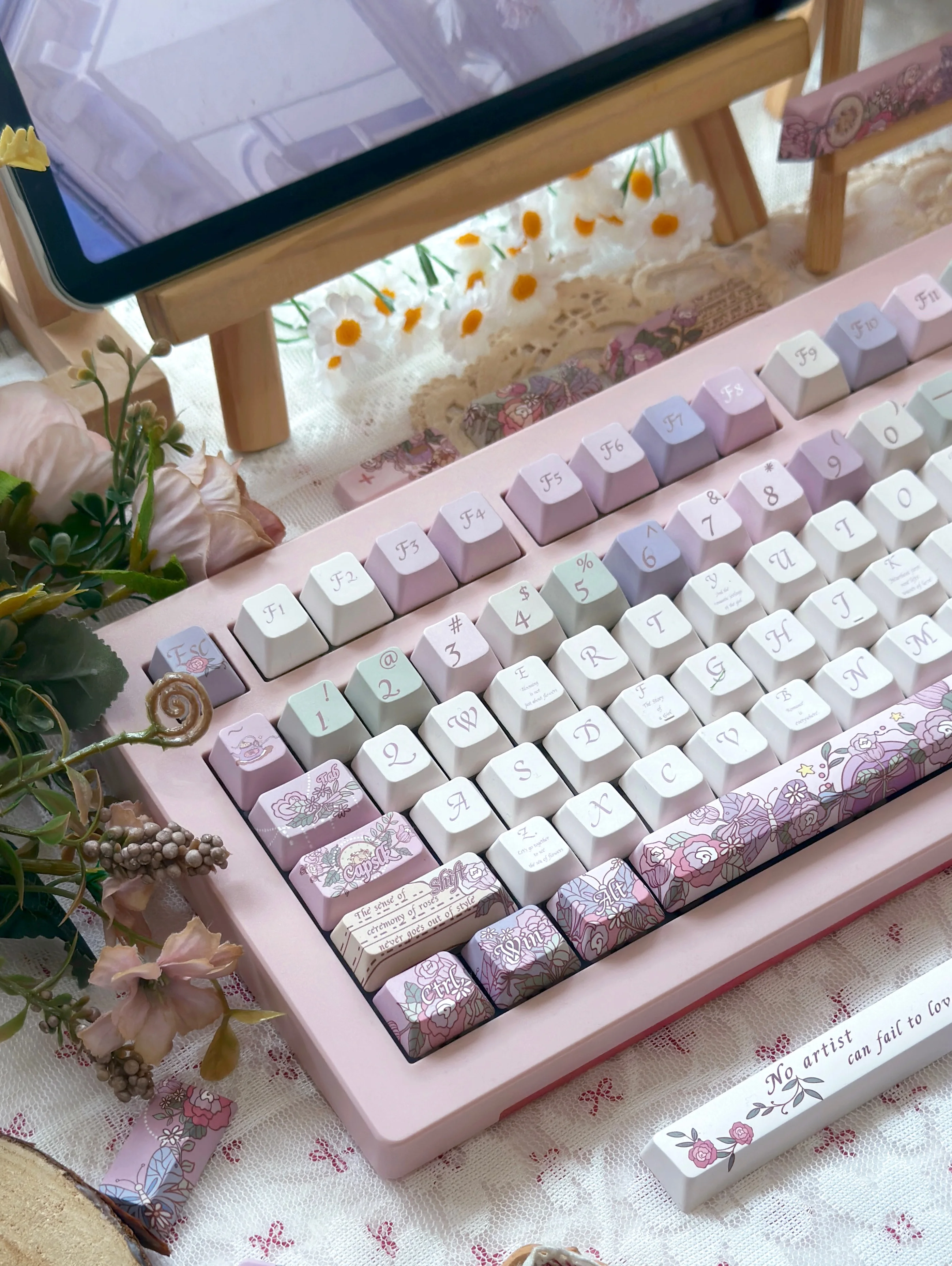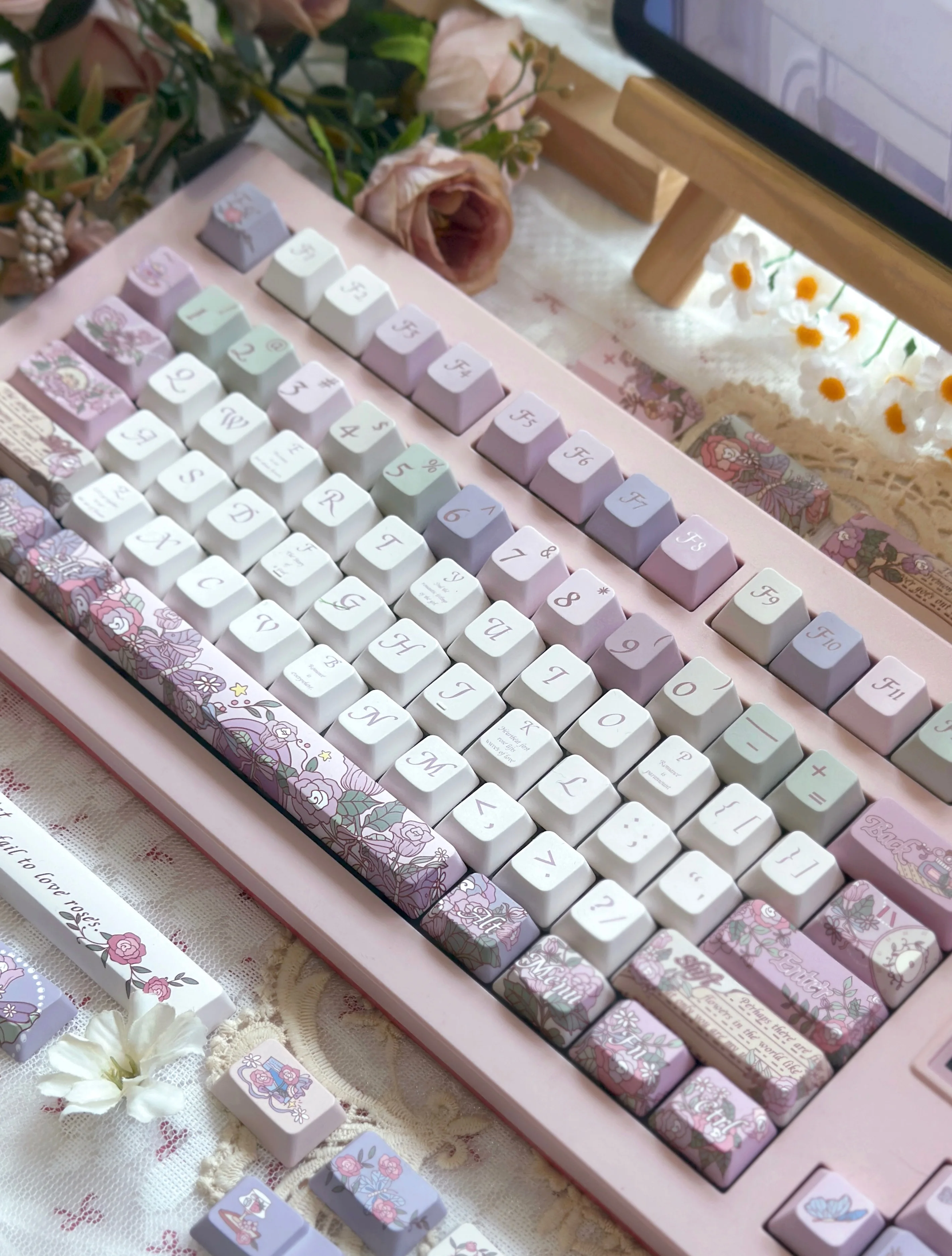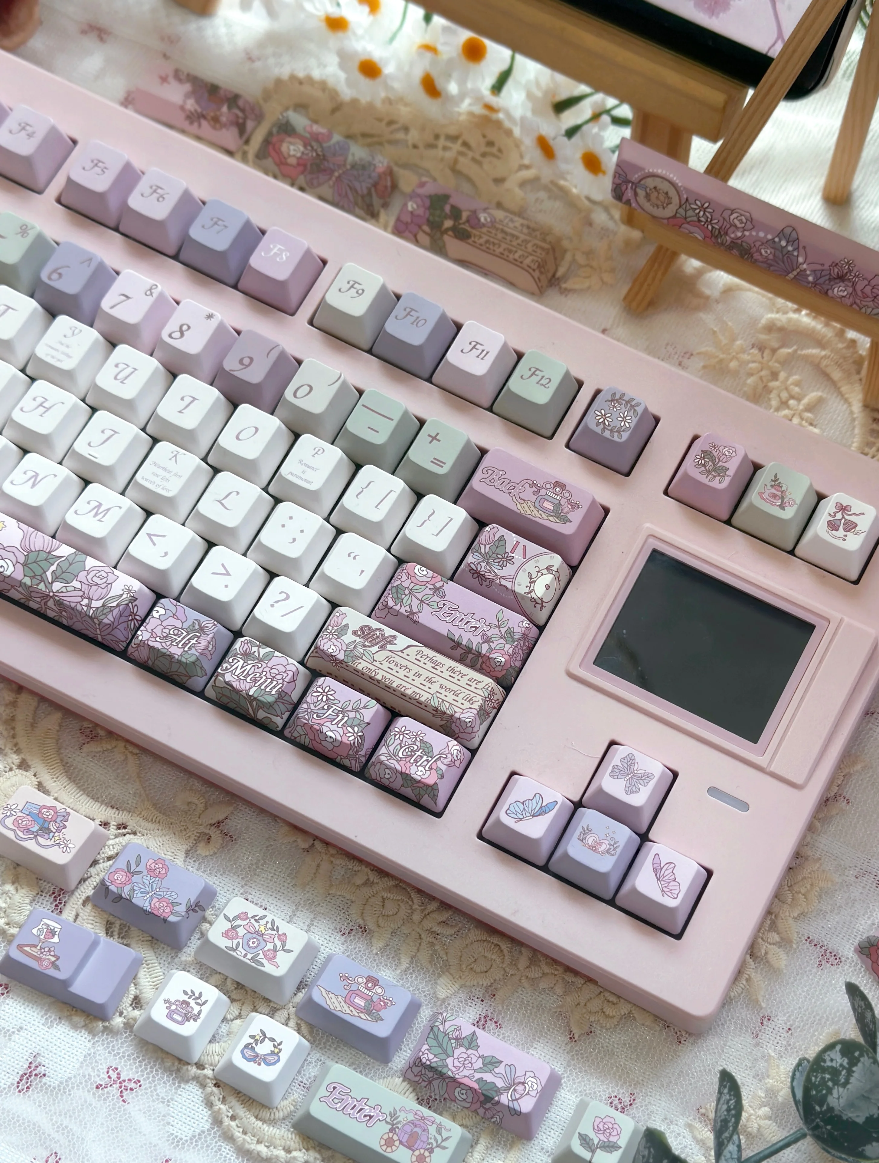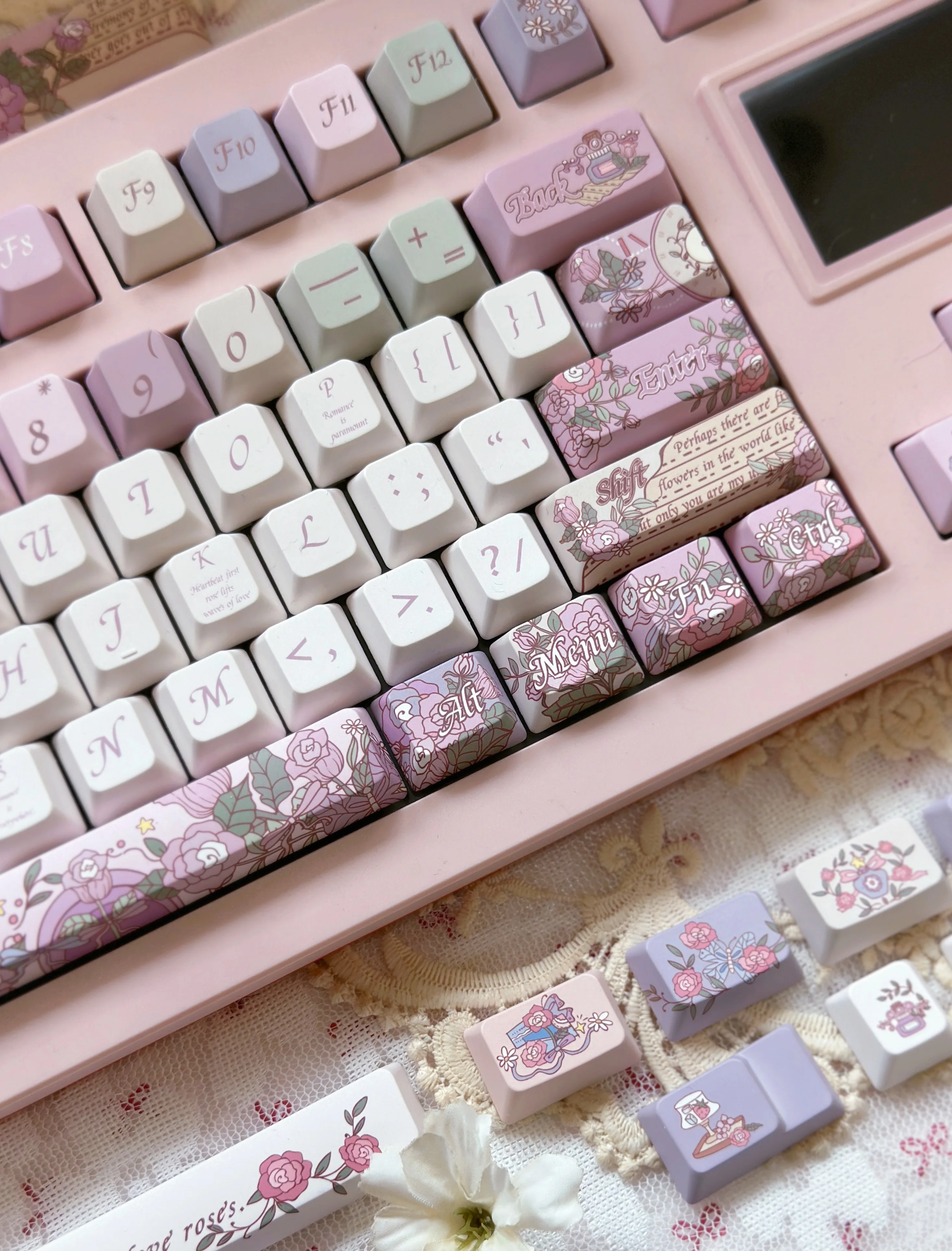 Fancce Ballet of Time Keycaps Custom PBT Cherry Profile Transparent Keycap Cute Rose Cartoon Anime Point Key Caps for Gamers