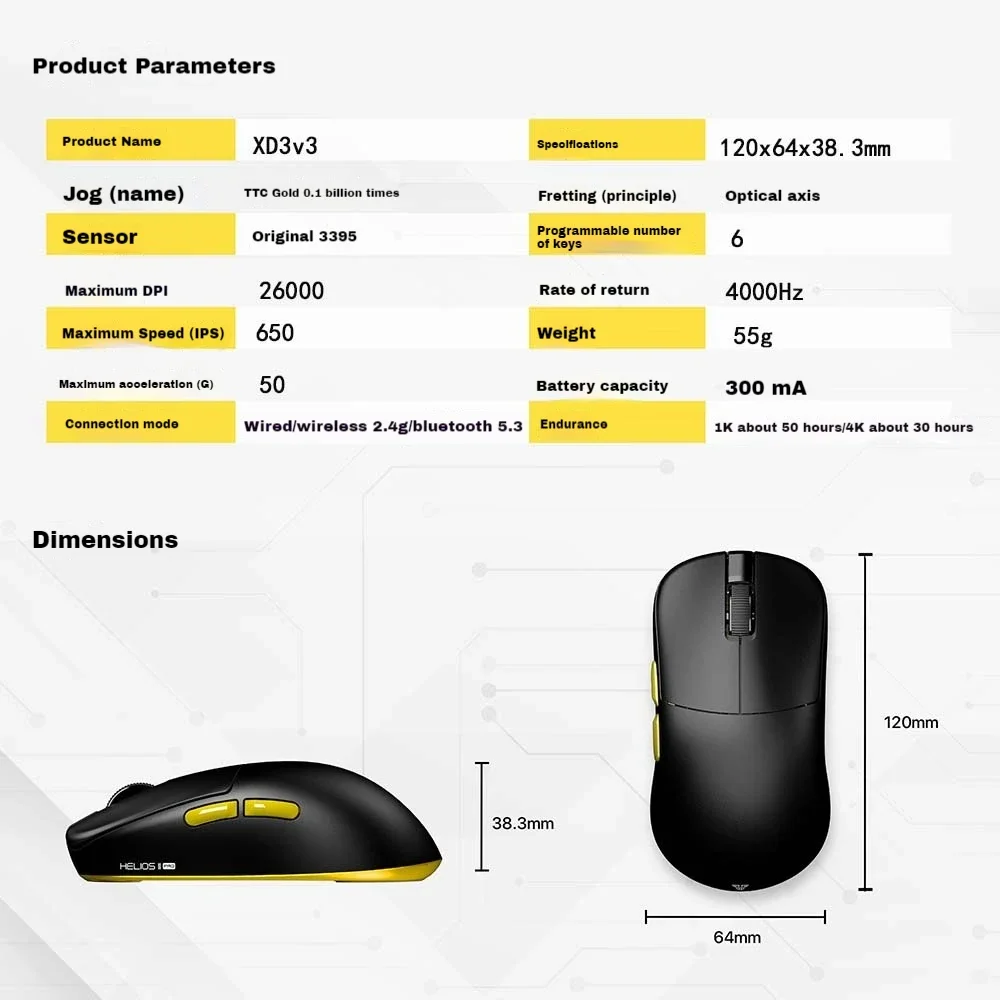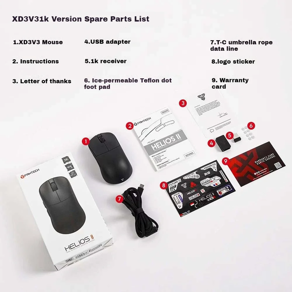 Comprar FANTECH HELIOS II Pro S XD3 V3 ratón inalámbrico para juegos Paw3395 8Khz nórdico Bluetooth tri-modo ultraligero accesorios de ratón Esports
