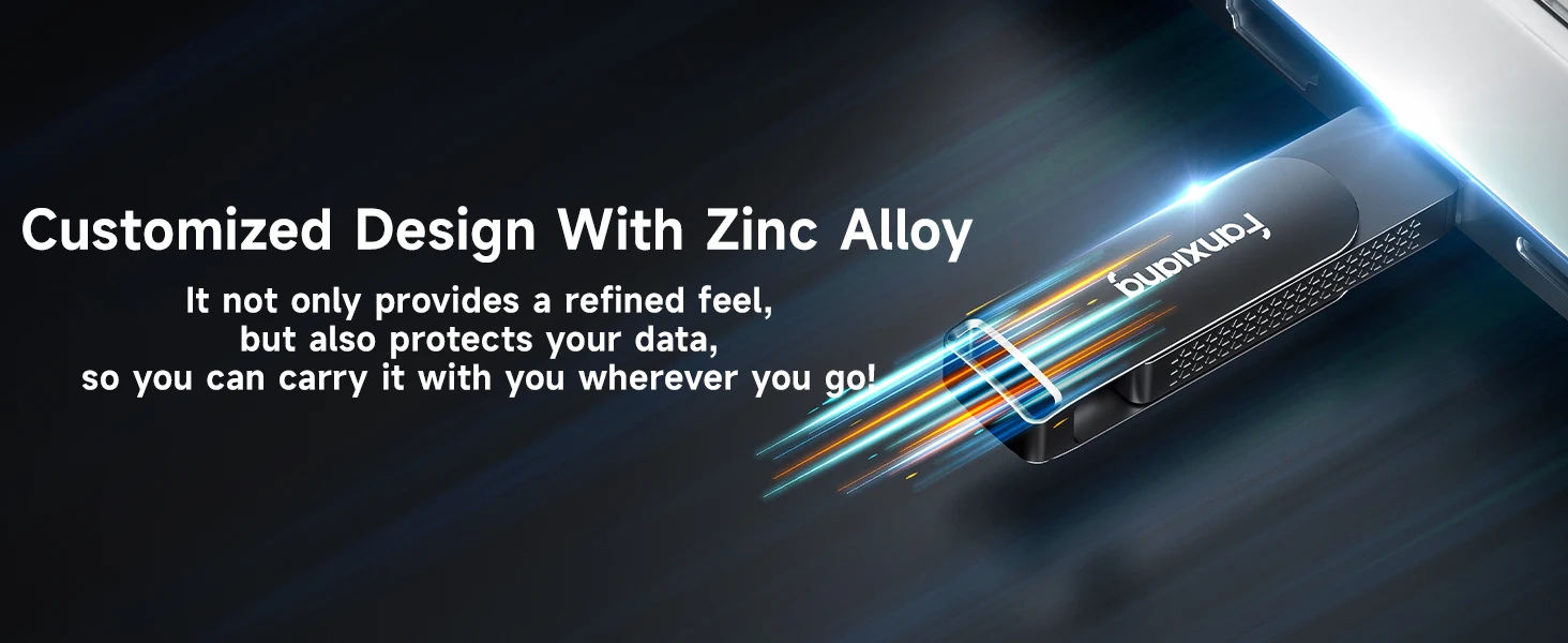 Unidad pulmonar Fanxiang F951 diseñada con interfaz tipo c y USB A para revolucionar su experiencia de almacenamiento y transferencia de datos.Esta unidad flash puede transferir cómodamente películas, archivos y datos entre diferentes dispositivos, ya sean PC, Mac, teléfonos o tabletas.Nuestro impulsor de 1 TB es la solución definitiva para liberar espacio y transferir datos: una unidad lo hace todo