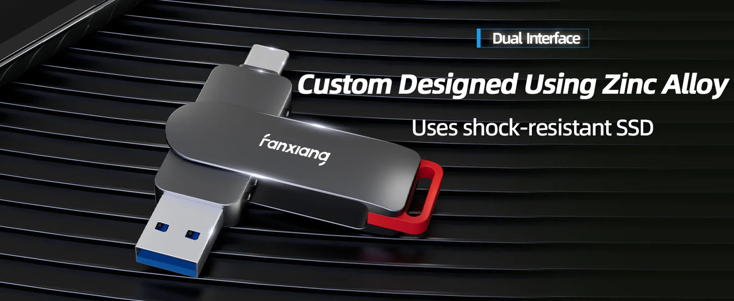 Fanxiang FF520 560MB/s Unidad flash USB tipo C + USB-A 256GB 512GB Unidad flash de pluma de estado sólido de alta velocidad para ordenador portátil, teléfono y PC