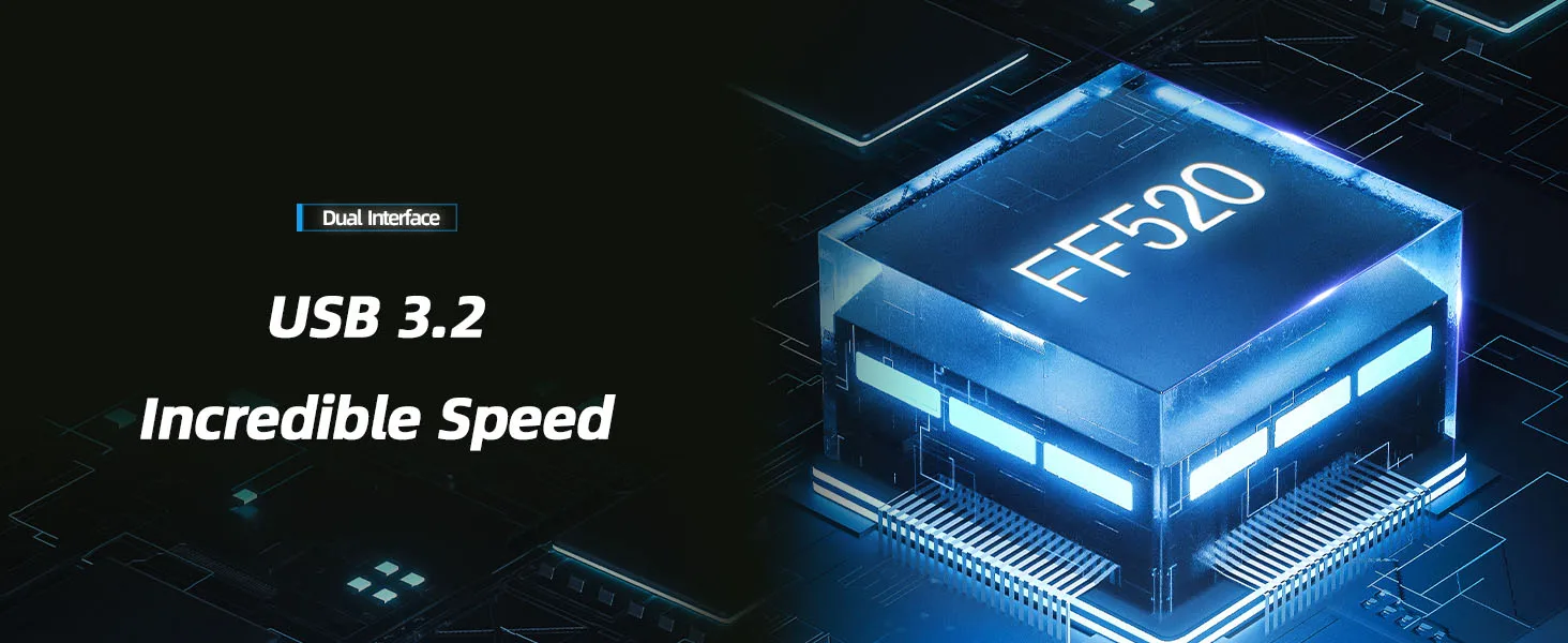 Flash NAND incorporado, el rendimiento del potente controlador SSD y partículas seleccionadas de alta calidad, las unidades flash USB Fanxiang FF520 pueden tener un rendimiento más estable y una vida útil más larga de más de 10 años.
