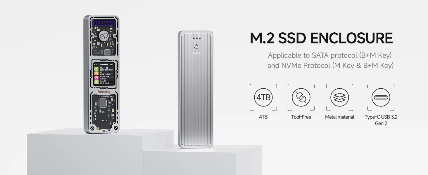 Fanxiang MD86 M.2 NVME/SATA SSD Gabinete 10 Gbps USB 3.2 Gen 2 Adaptador/lector USB SSD Compatible con teclas M/B+M/2230/2242/2260/2280
