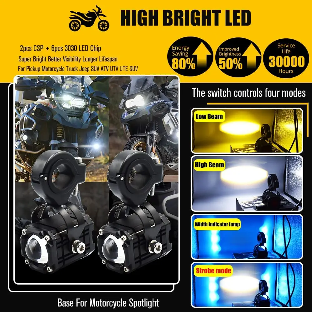 • Compatibilidad universal :Esta lámpara de conducción auxiliar LED es compatible con una amplia gama de motocicletas, incluyendo BMW R 1200GS, r1250gs, ADV F800GS, K1600, Honda CRF1000L y más.