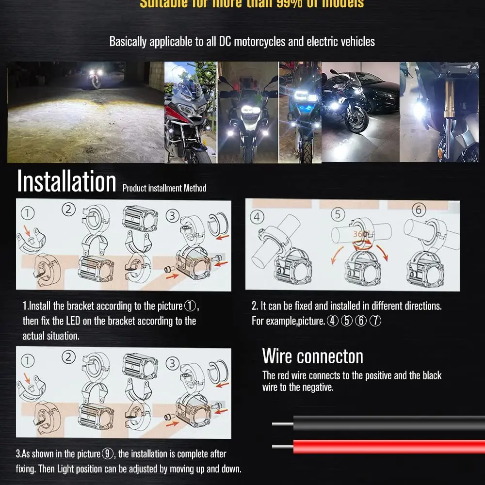 • Fácil instalación :La lámpara de conducción auxiliar se puede instalar fácilmente en su motocicleta sin la necesidad de herramientas especiales o experiencia.