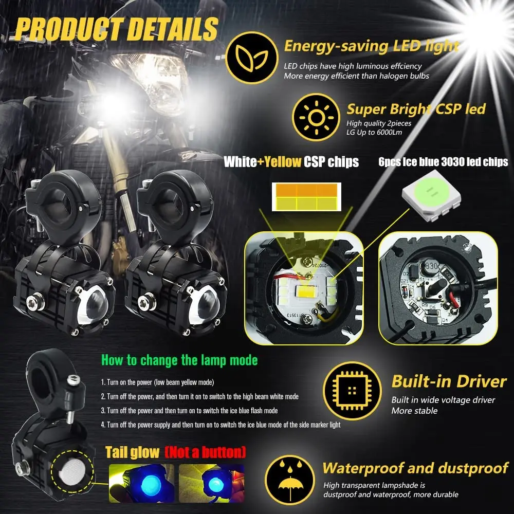 • Compatibilidad universal :Esta lámpara de conducción auxiliar LED es compatible con una amplia gama de motocicletas, incluyendo BMW R 1200GS, r1250gs, ADV F800GS, K1600, Honda CRF1000L y más.