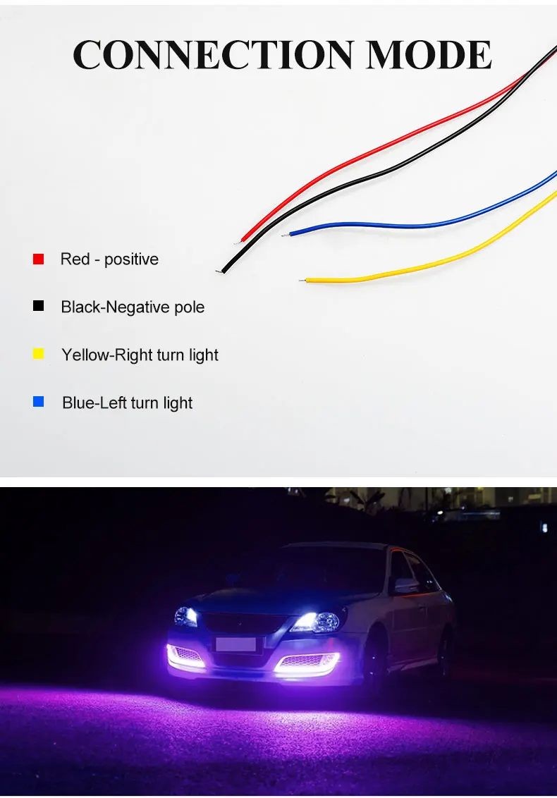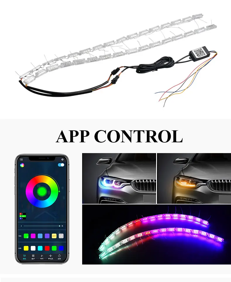 Comprar Faro LED de flujo secuencial, tira de luz diurna DRL, Flexible, impermeable, decorativa, Ojo de Ángel, señal de giro, 2 piezas APP