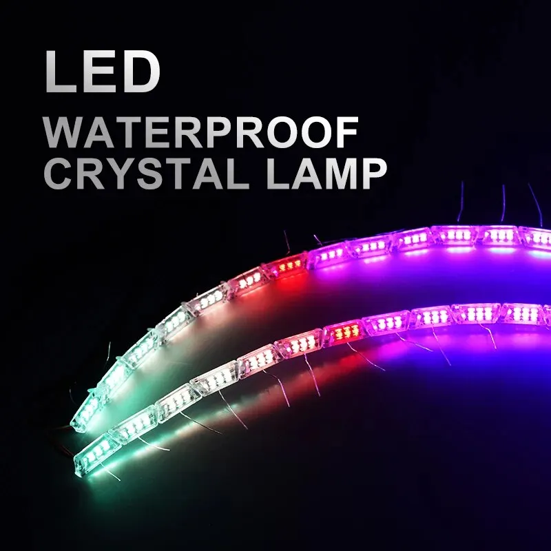 • Lámpara de señal de vuelta decorativa impermeable flexible del ojo del ángel :La lámpara de señal de vuelta decorativa impermeable flexible del ojo del ángel no sólo añade a la súplica estética de su vehículo pero también sirve como lámpara de señal práctica.