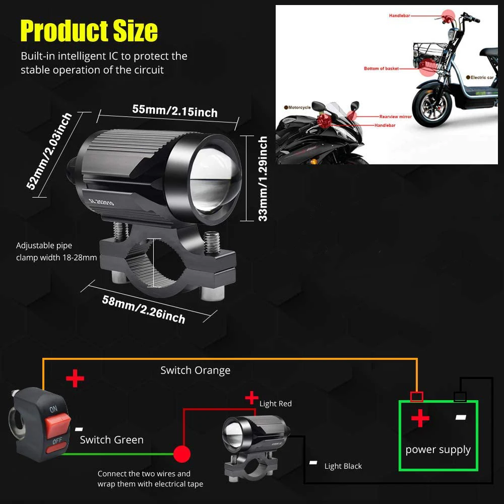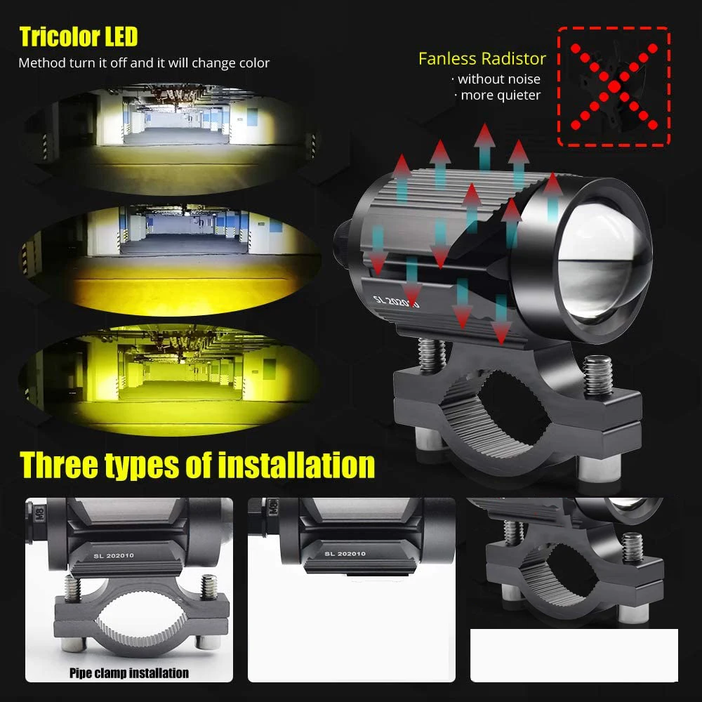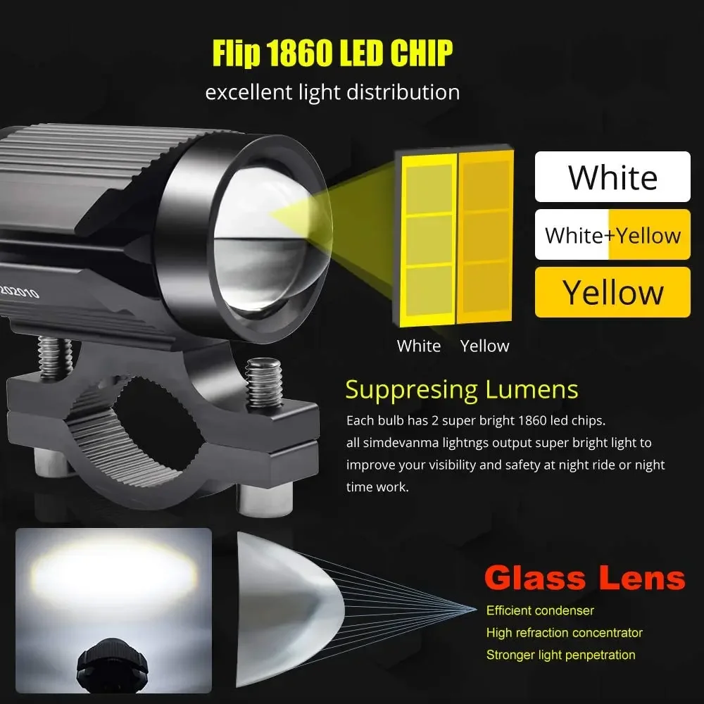 Nuestras luces LED están equipadas con seis chips LED ZES-3570 de alta intensidad de 10 vatios.La temperatura de color de la luz brillante es de luz blanca de 6000 K y luz ámbar de 3000 K, lo que hace que su conducción sea más cómoda.