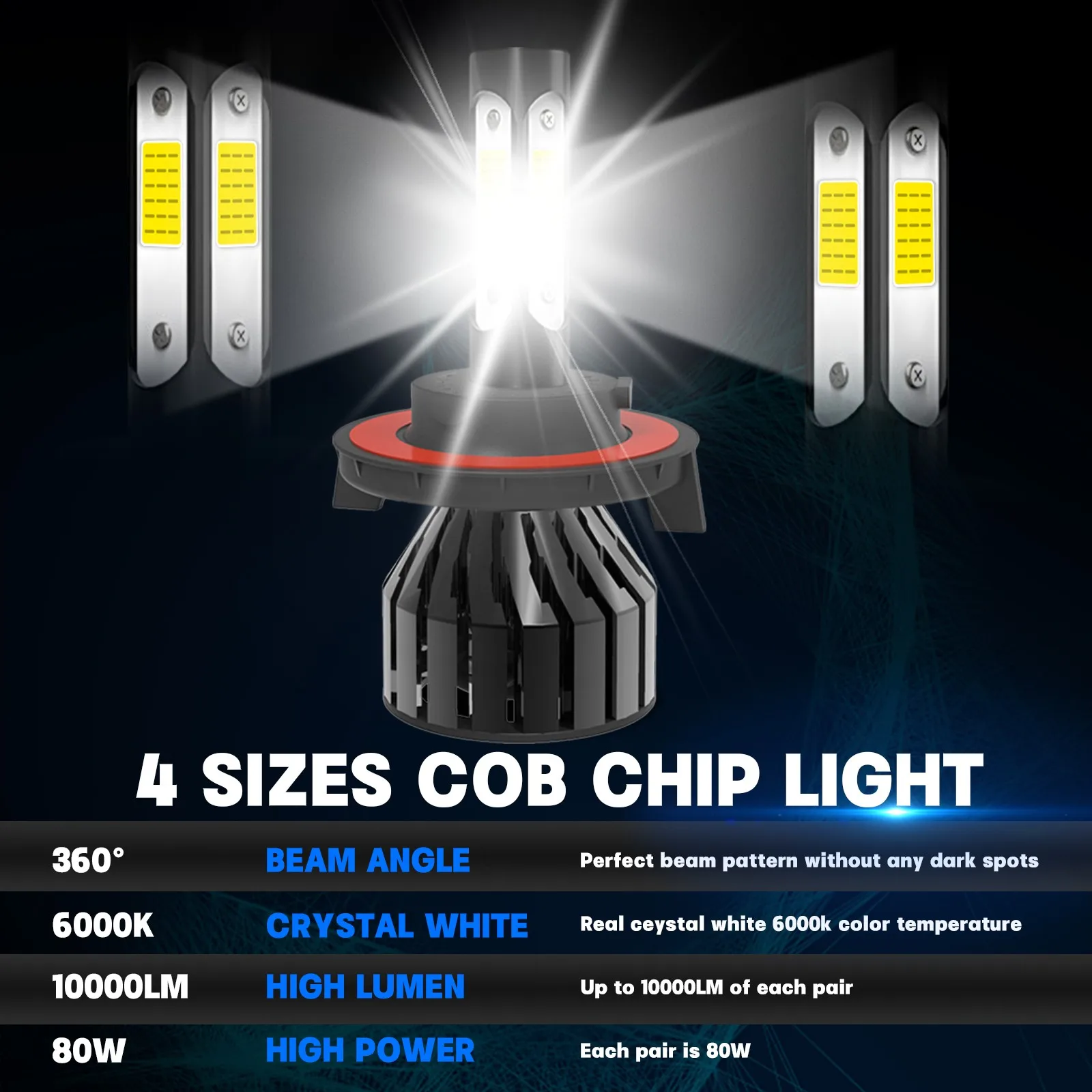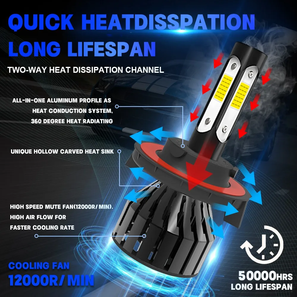 Punto excepcional del producto del LED: El producto con el poder más elevado de la luz blanca de 8000 LM 6000 K. En comparación con las lámparas halógenas, el brillo aumenta en un 300%, lo que le brinda más enfoque y una iluminación más brillante. Modo de haz perfecto, sin deslumbramiento o puntos negros, más seguro para conducir. Ventilador silencioso de alta velocidad incorporado (12000r/min), alto volumen de aire, velocidad de enfriamiento más rápida. La Función de alta velocidad de la FAN puede garantizar la vida de servicio de la luz más de largo.