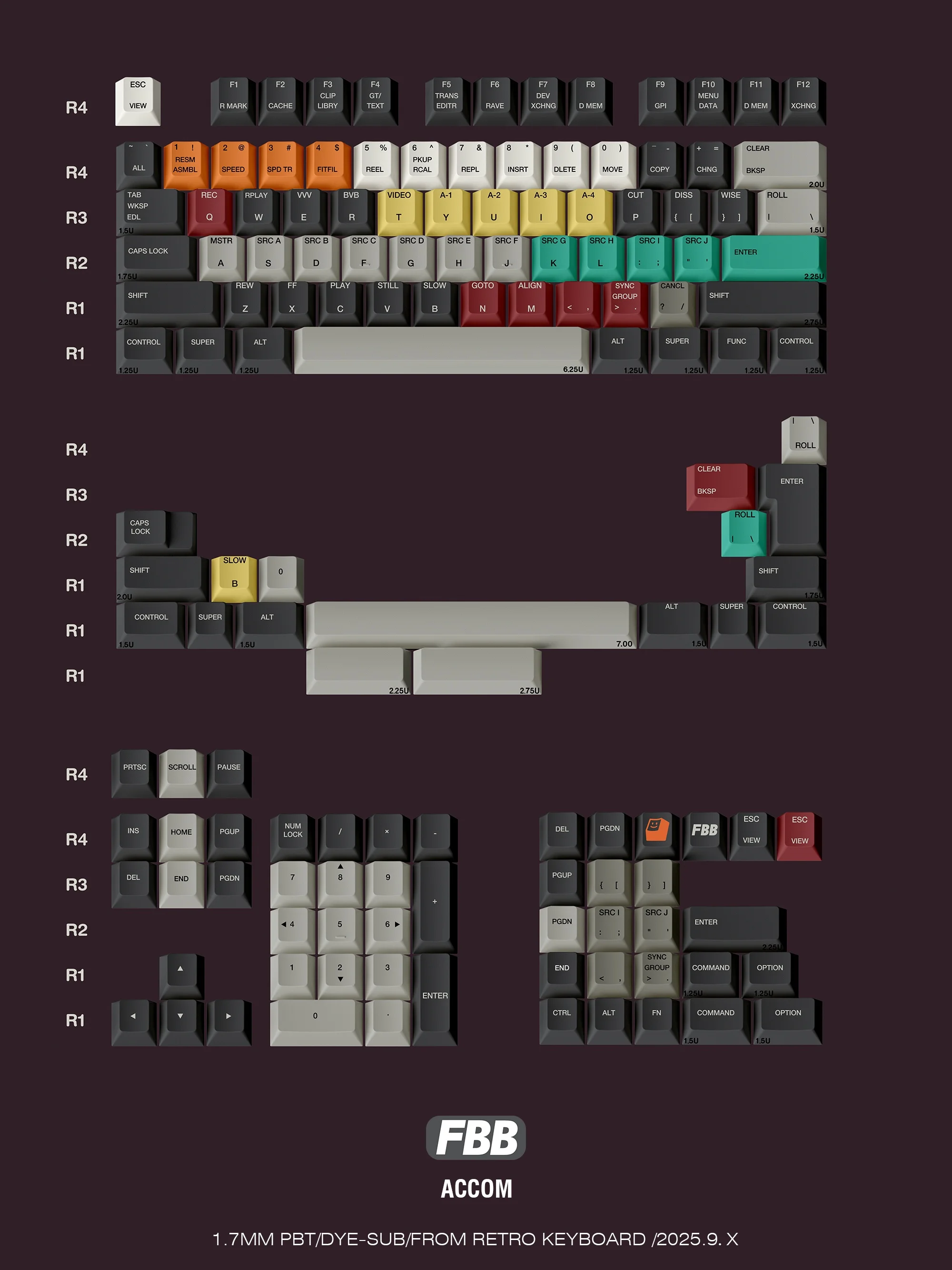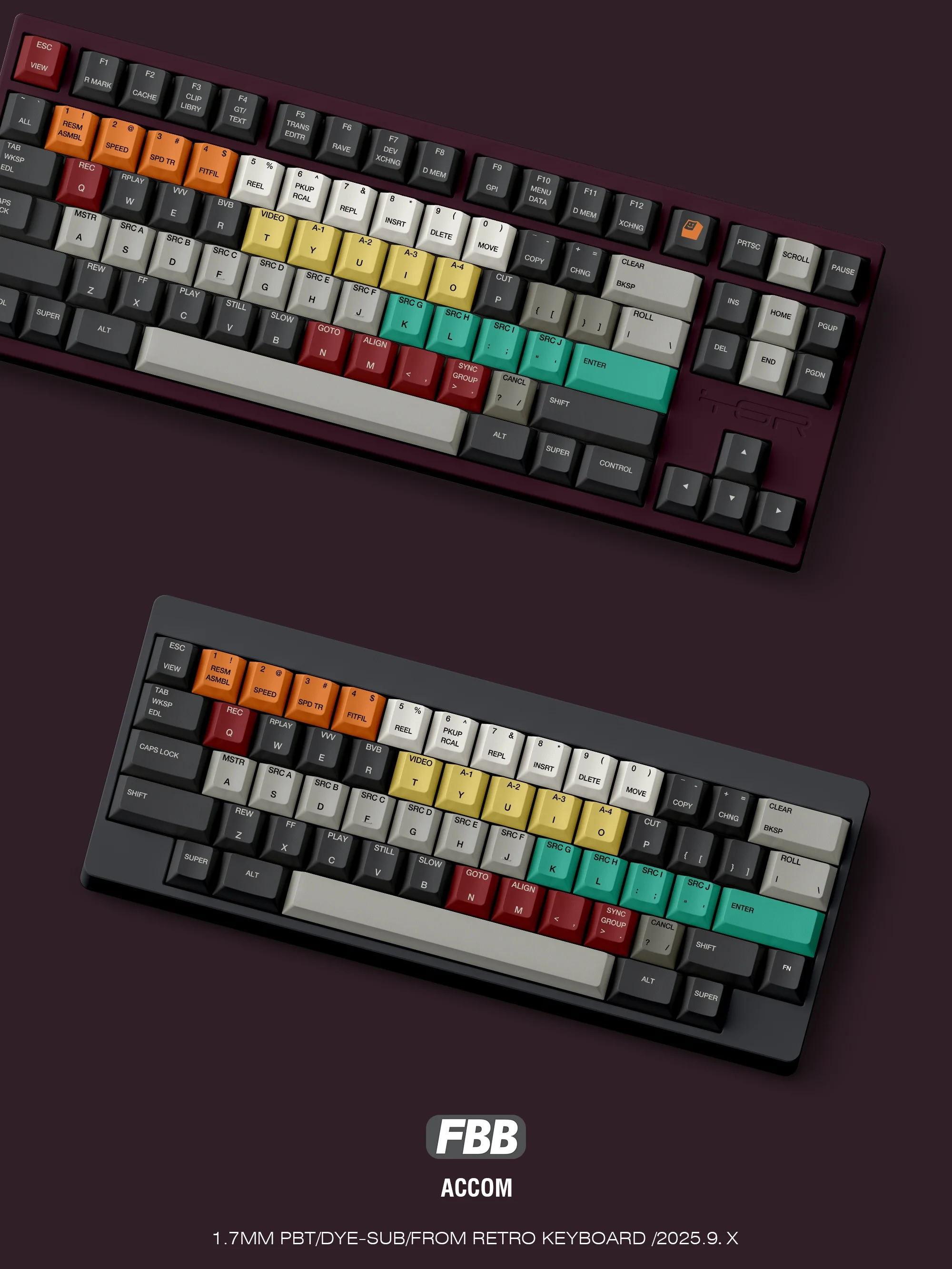 FBB ACCOM-teclas originales personalizadas PBT, sublimadas por tinte de 5 lados, 1,7mm de espesor, 145 piezas, tapas para teclado, ratones y teclados, accesorios