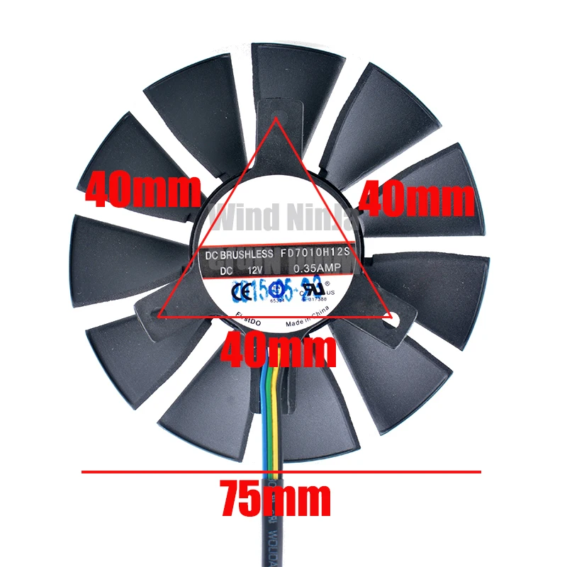 Comprar FD7010H12S Ventilador de refrigeración de 75 mm para tarjeta gráfica DC12V 0.35A 4 pines 40x40x40 mm Espaciado entre orificios 75 mm de diámetro