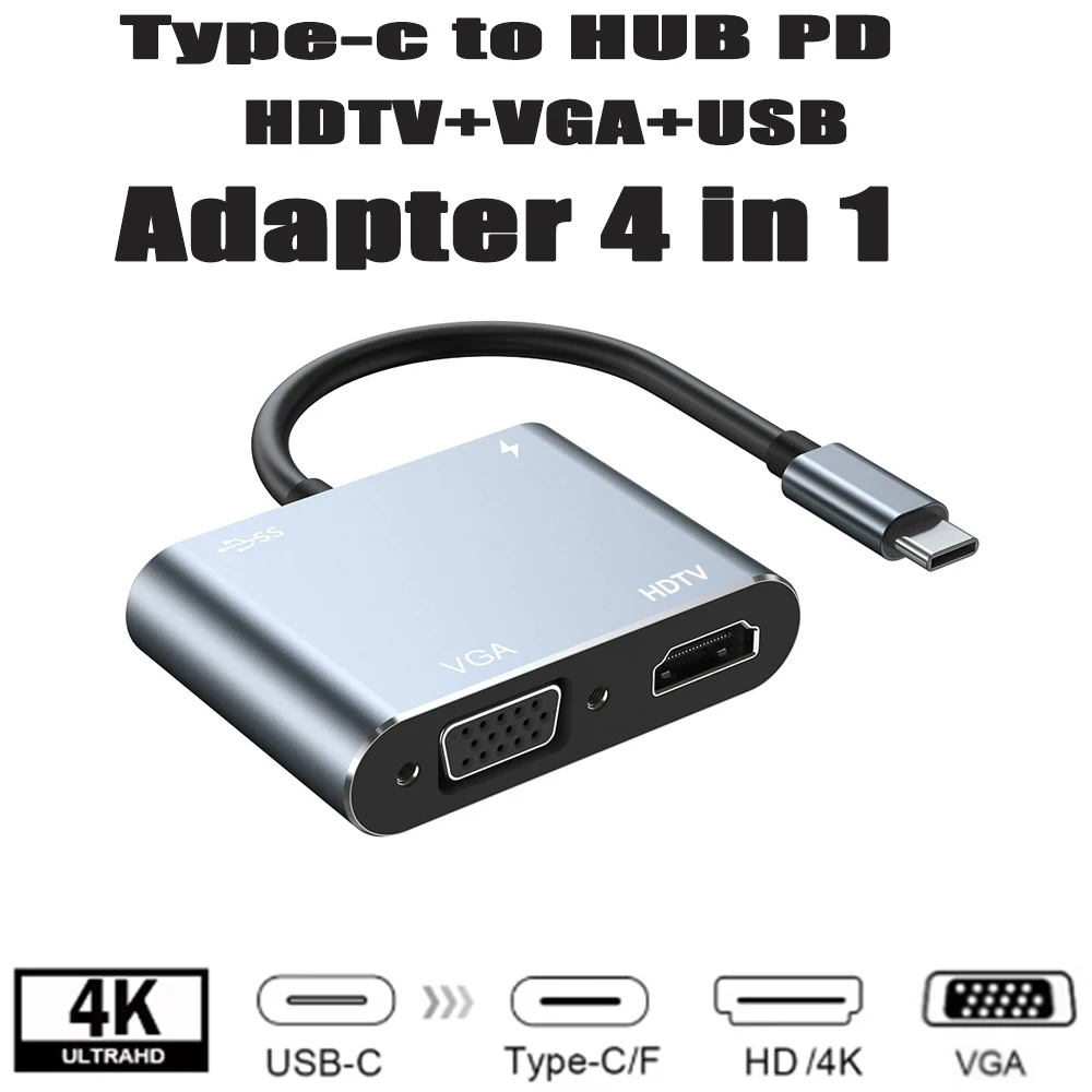 Cable adaptador USB 3 en 1 chapado en oro tipo C macho a tipo C/compatible con HDMI/compatible