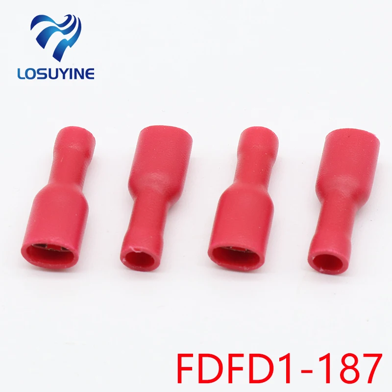 Comprar FDFD1-187 FDFD1.25-187 conectores de terminales de engarzado eléctricos aislados hembra aislante 100 unids/pack conector de Cable FDFD