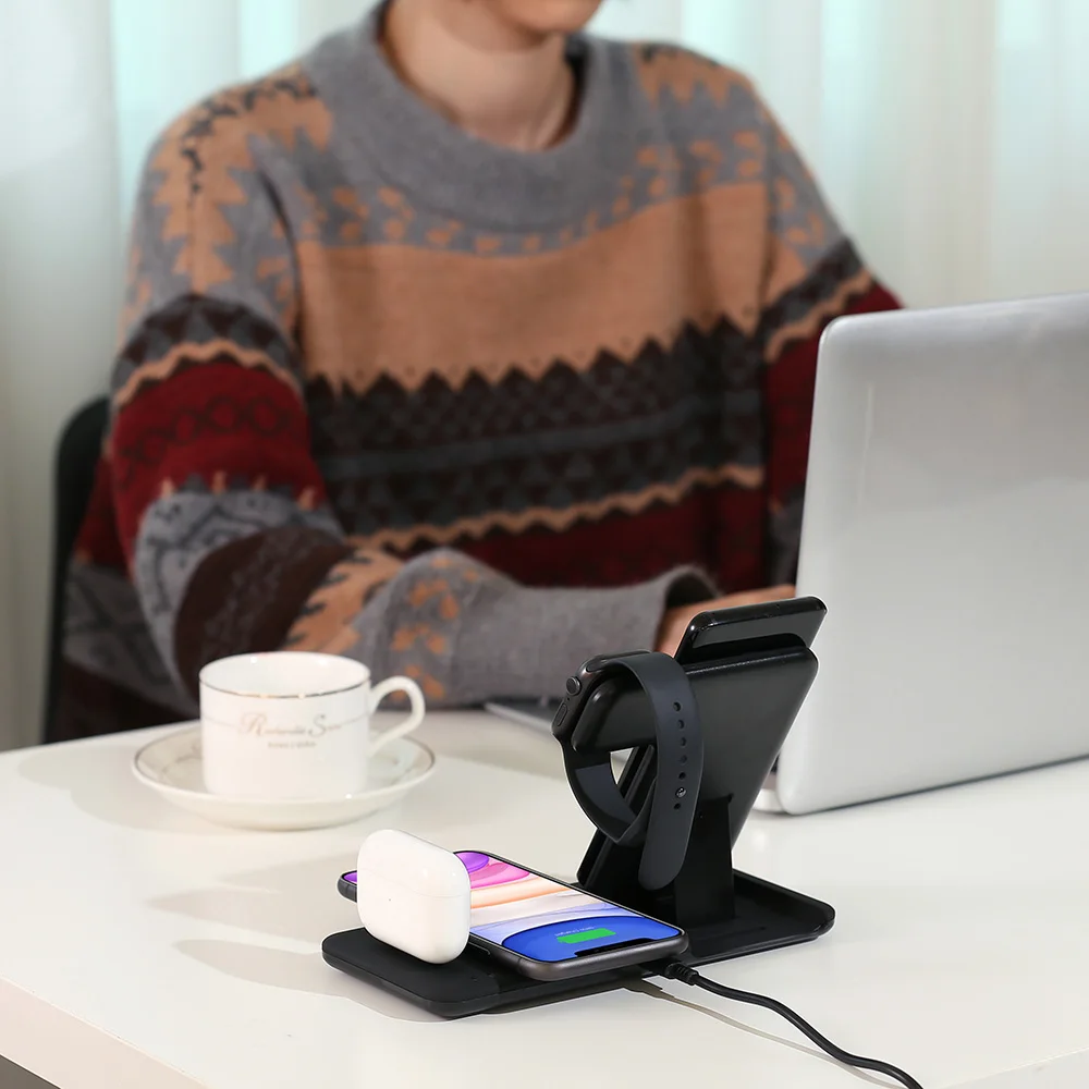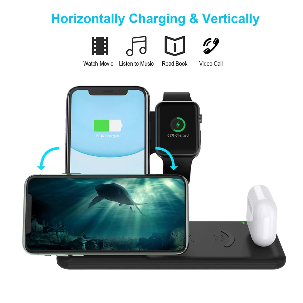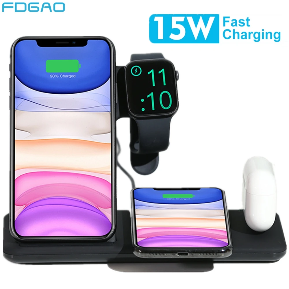 Comprar FDGAO-Soporte de cargador inalámbrico Qi, estación de carga rápida para iPhone 11, X, XS, MAX, XR, 8, Apple Watch 5, 4, 3, 2, 1, Airpods Pro, 15W
