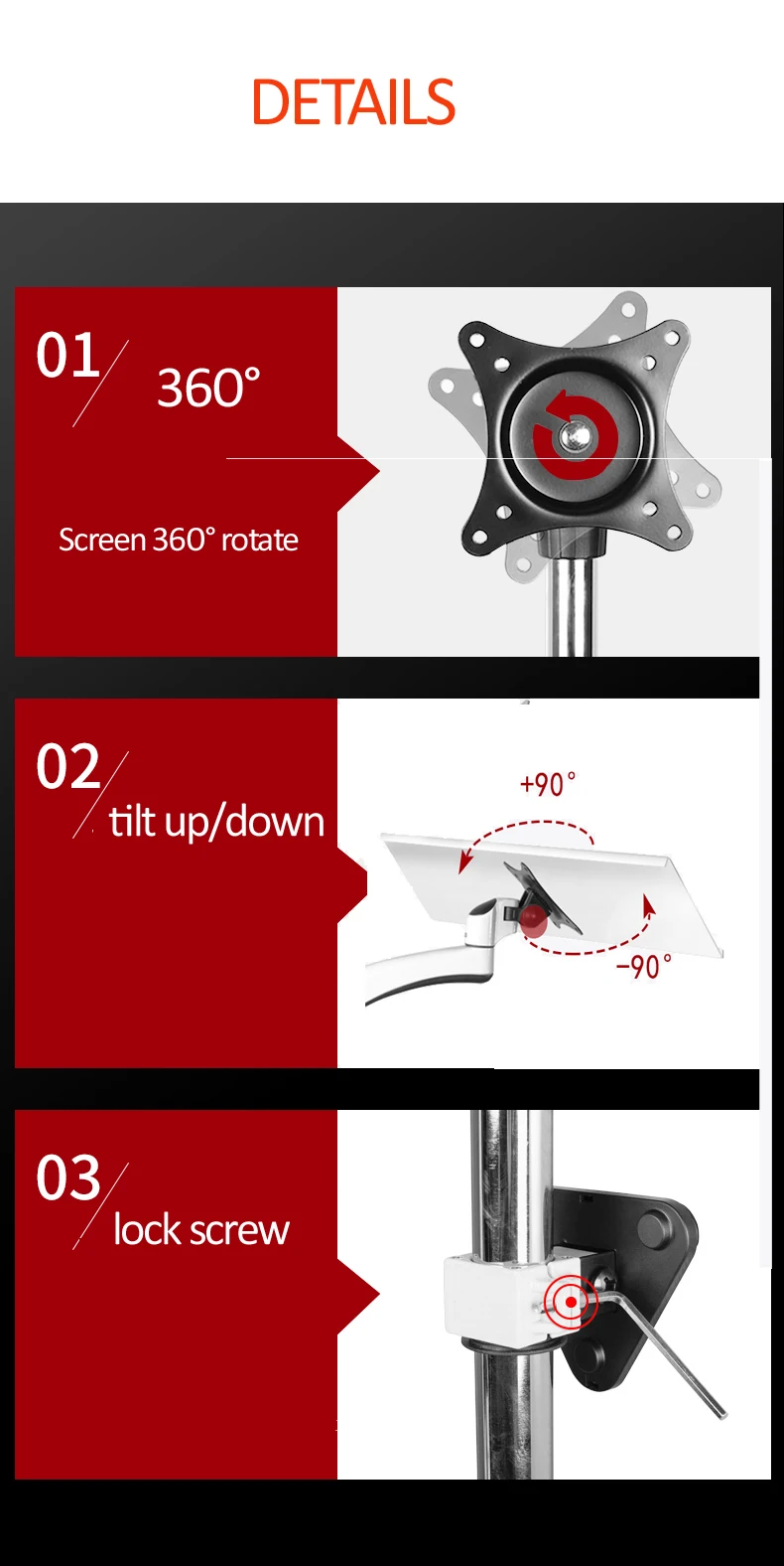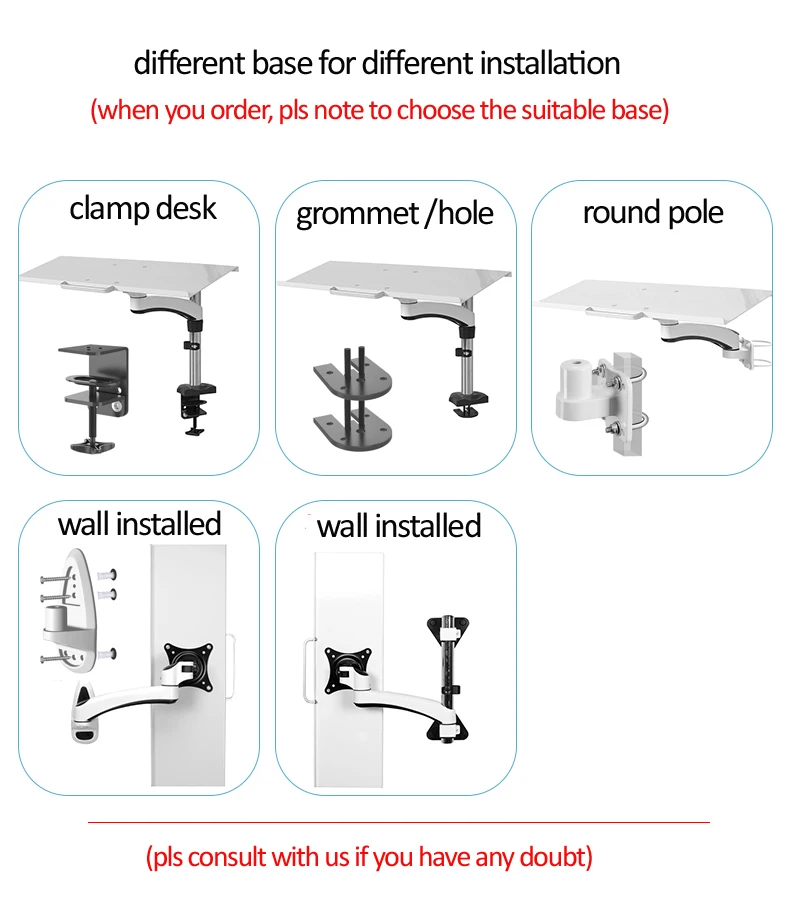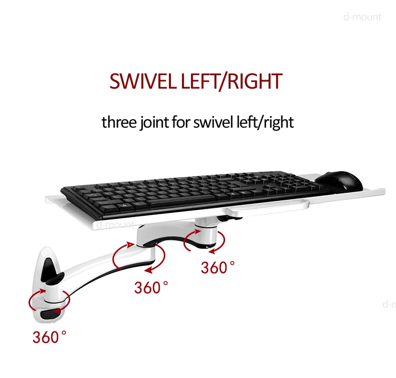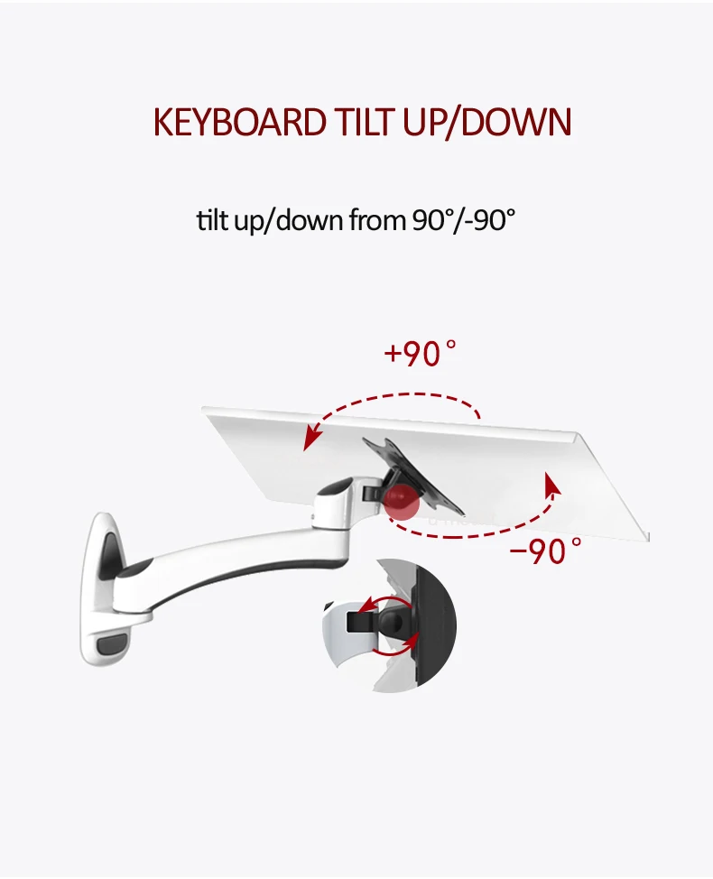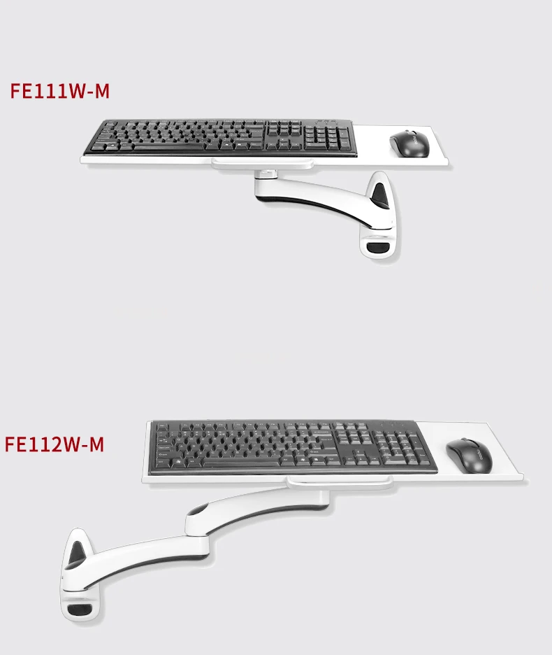 Comprar FE111W-M FE112W-M Aluminio 0-8kg 360 abrazadera giratoria teclado grande soporte de montaje en pared con ratón poste redondo blanco largo