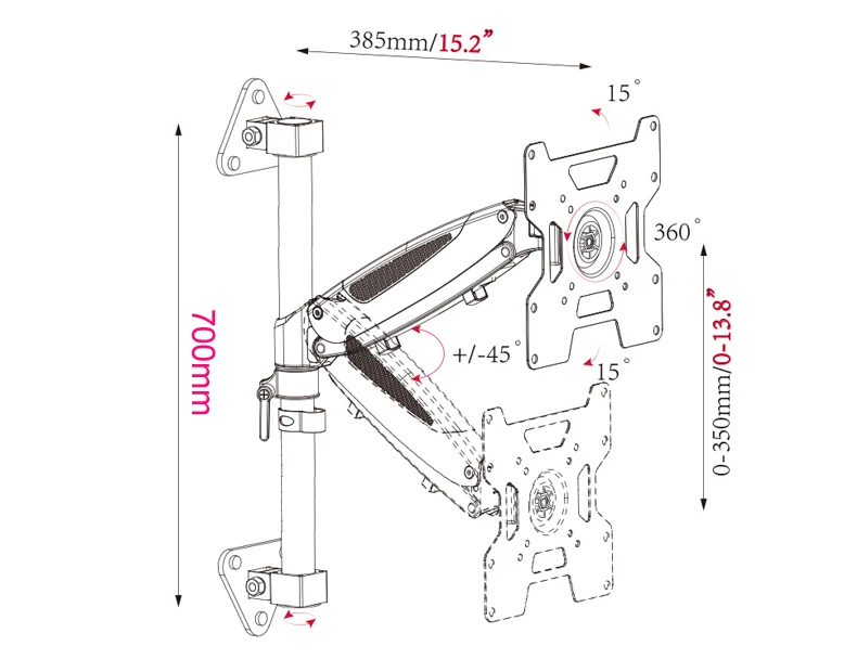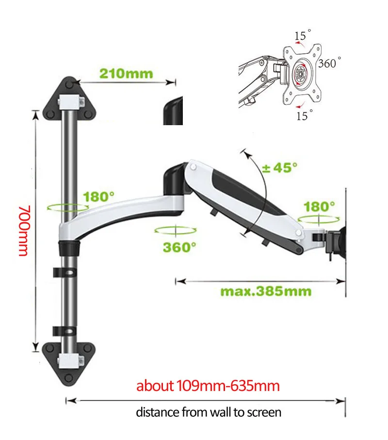 Carga: 5-12kgs(Tenga en cuenta el peso de la pantalla dentro de este rango, o el resorte de gas no funcionará)