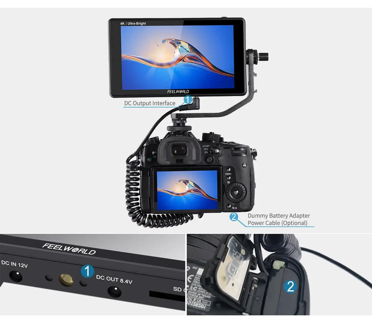 LUT6 es un monitor superior de cámara ideal para tiradores de cámaras DSLR y sin espejo.Porque el LUT6 proporciona alimentación auxiliar; permitiendo a los tiradores alimentar sus cámaras.Con un cable adaptador de batería (opcional), el LUT6 extiende el tiempo de funcionamiento de la cámara y al mismo tiempo proporciona una pantalla más utilizable.