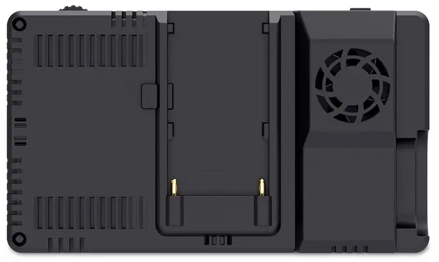 Con las entradas HDMI 4K, puede conectarlo a una cámara de consumo o a una cámara DSLR.También obtienes salidas de bucle, para que puedas mostrar vídeo en vivo o ampliar la visualización en pantallas o proyectores externos con audio integrado.También puedes monitorear audio usando el conector para auriculares estéreo de 3,5 mm.Para la alimentación, hay una entrada de 12 V CC y una ranura para batería NP-F.La parte posterior del monitor tiene el ventilador que disipa automáticamente el calor según el brillo de la retroiluminación.Bajo "auto", si el brillo de la retroiluminación es superior a 80, el ventilador se encenderá automáticamente.