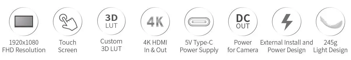 Cuando se conecta a su cámara, el tamaño y el peso de su monitor son importantes.Afeitamos el F5 Pro V4 hasta solo 245 gy agregamos soportes de tornillo 1/4-20 en la parte superior, inferior y derecha para facilitar la jaula, el aparejo del adaptador y el brazo inclinable.Hay una placa de batería F970 y un kit de instalación/alimentación en la parte posterior del monitor, el kit de instalación/alimentación puede alimentar e instalar el equipo externo, como transmisor inalámbrico, luz LED y otros equipados con la placa de batería Sony F970.F5 Pro V4 es compatible con la mayoría de cámaras y dispositivos listos para HDMI y es el compañero perfecto para los tiradores que siempre están en movimiento.