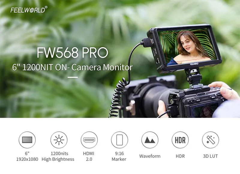 FEELWORLD FW568 PRO tiene tamaño moderado, peso ultraligero, pantalla de alto brillo, velocidad de transmisión HDMI de hasta 4K a 60 Hz y una serie de funciones auxiliares de cámara.Es un monitor que puede satisfacer sus necesidades creativas en cualquier momento y en cualquier lugar.