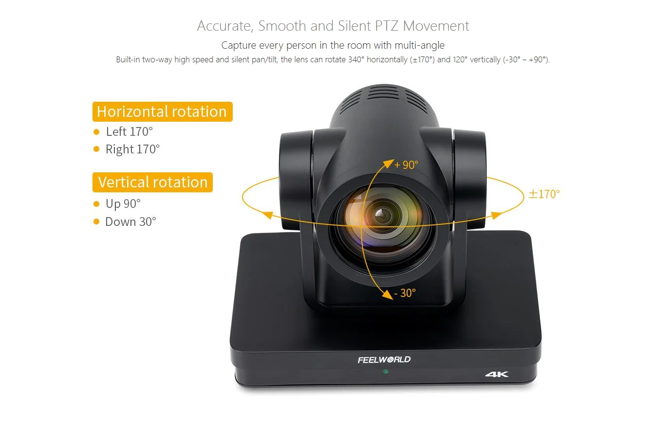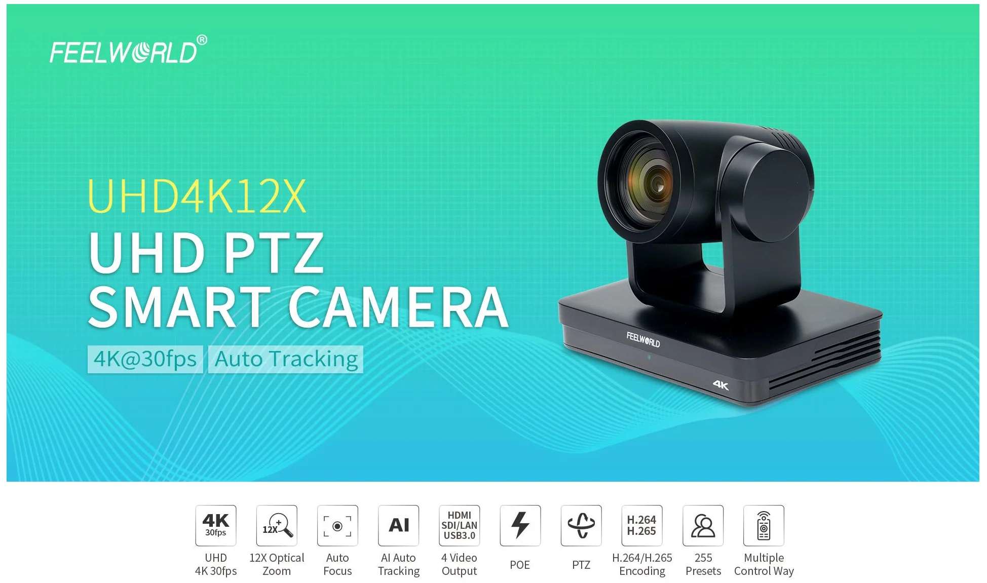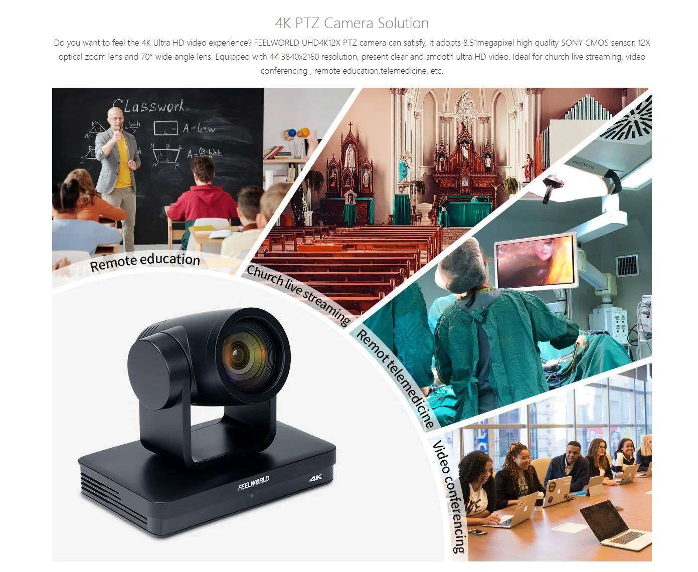 Comprar FEELWORLD-cámara PTZ 4K, UHD4K12X, USB, POE, 12X, Zoom óptico, enfoque automático, SDI, HDMI, IP, 4K, 30FPS, Control remoto para videoconferencia