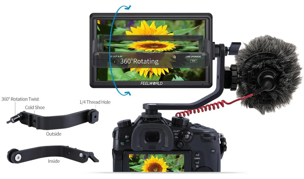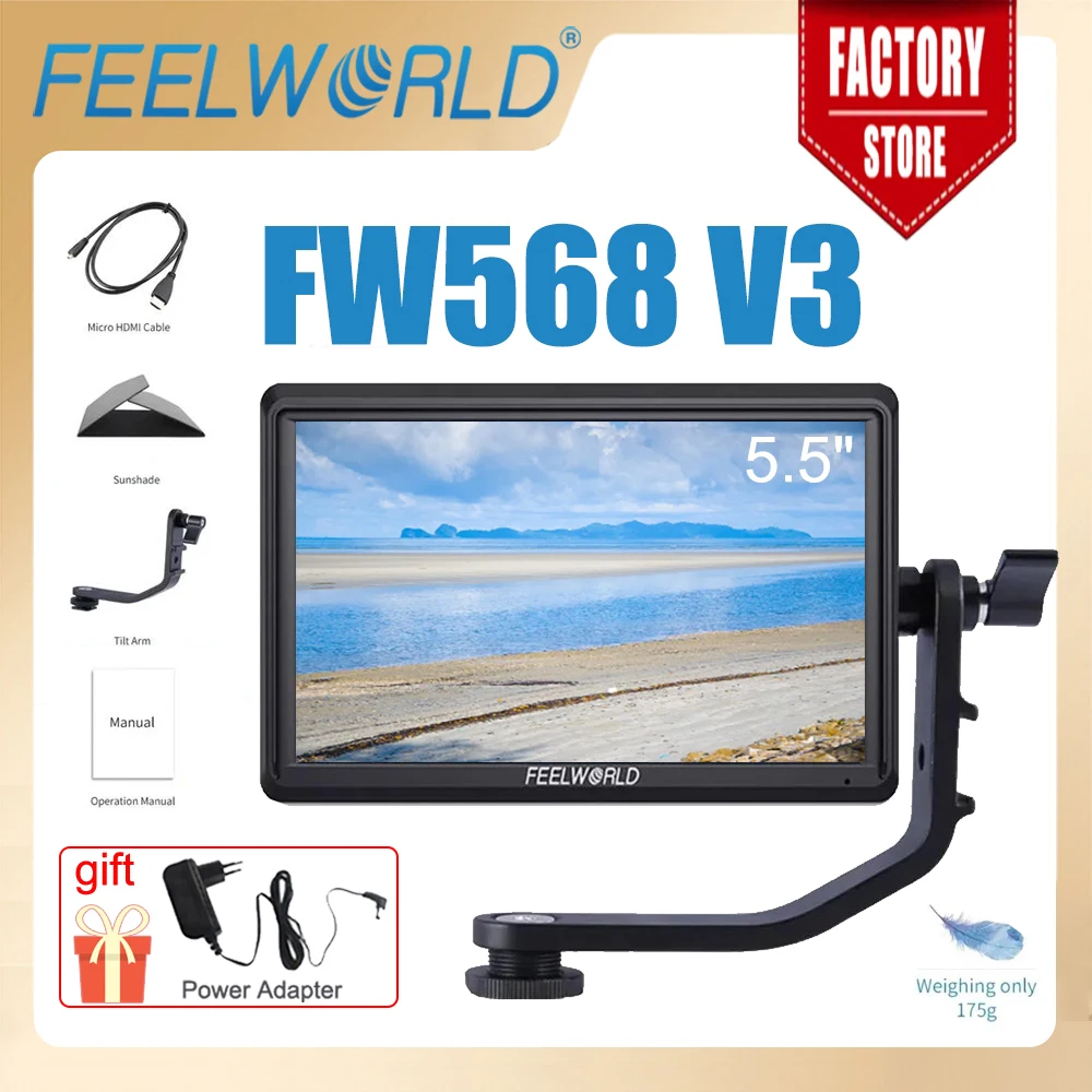 Comprar FEELWORLD FW568 V3 cámara portátil DSLR Monitor de forma de onda de campo 5,5 pulgadas 4K HDMI entrada salida Full HD 1920x1152 salida de potencia de brazo inclinable