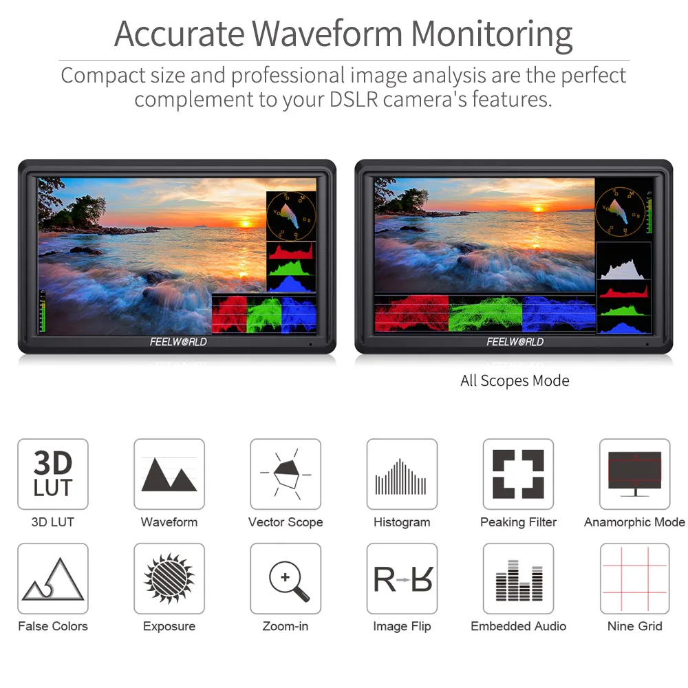 El FW568 V2 seguramente agregará valor de producción instantáneo para tiradores DSLR y sin espejo.Su pantalla brillante, herramientas de software profesionales y su conveniente montaje son invaluables para tiradores que buscan hacer más con menos equipo.El monitor incluye una gran cantidad de funciones útiles como histograma, color falso, asistencia de enfoque, audio integrado, píxel a píxel, guías de fotogramas, nueve rejillas, etc.