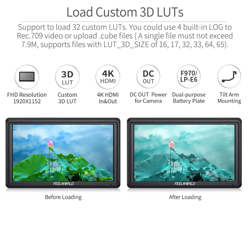 Cargue LUT 3D personalizados, vista previa del aspecto de filmación en el rodaje de campo