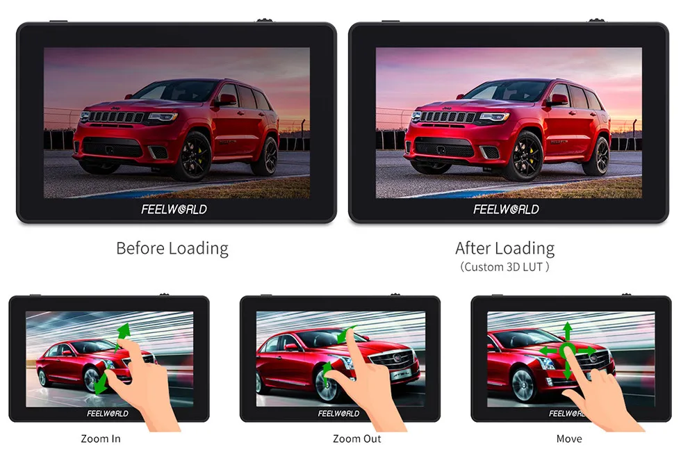 F6 PLUS proporciona S-log2/3, v-log, log-c, etc., para convertir el modo de registro en REC709 para todas las cámaras principales. La función de carga LUT hace que el trabajo de calibración del color del disparo anterior sea más fácil e intuitivo, optimiza el flujo de trabajo y mejora la eficiencia del trabajo. El cubo creativo 3D LUT del usuario o el cubo 3D LUT de calibración se pueden cargar a F6 PLUS con tarjeta SD.