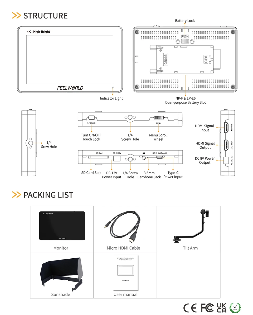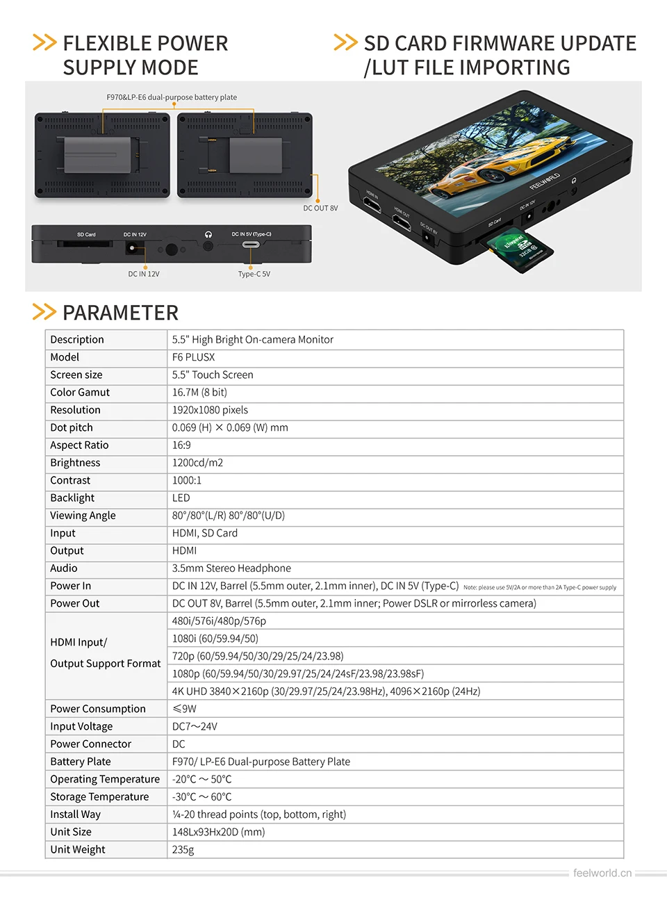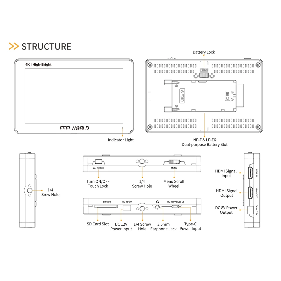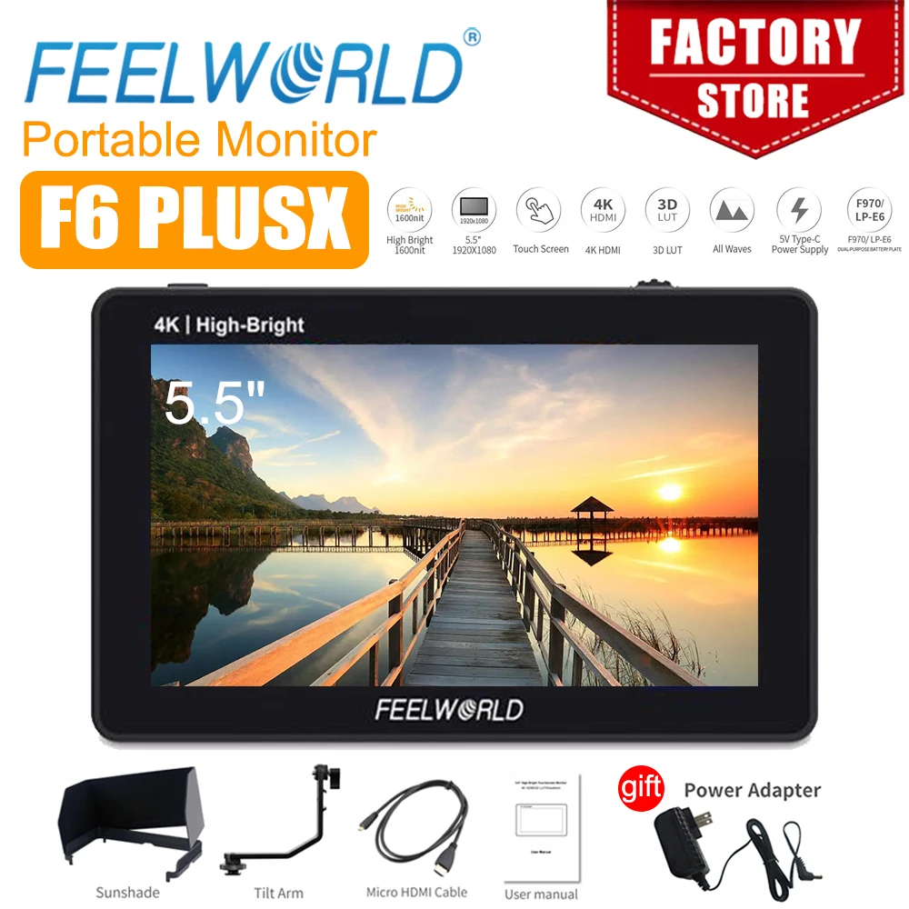Comprar FEELWORLD-Monitor de campo F6 PLUSX, pantalla táctil de 5,5 pulgadas, alto brillo, 1600nit, cámara DSLR, IPS, FHD1920x1080, 4K, HDMI