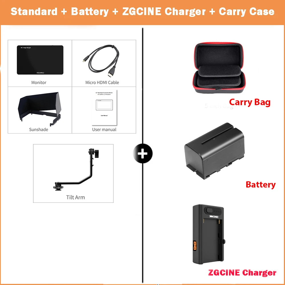 Paquete 5: Kit estándar oficial + batería de 2 "+ cargador ZGCINE