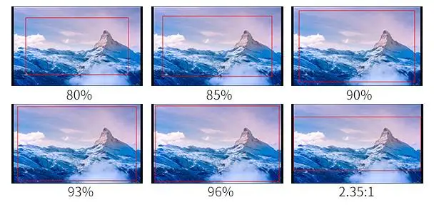 Marca de seguridad para la búsqueda de vistas y composición (80%, 85%, 90%, 93%, 96%, 2,35: 1)