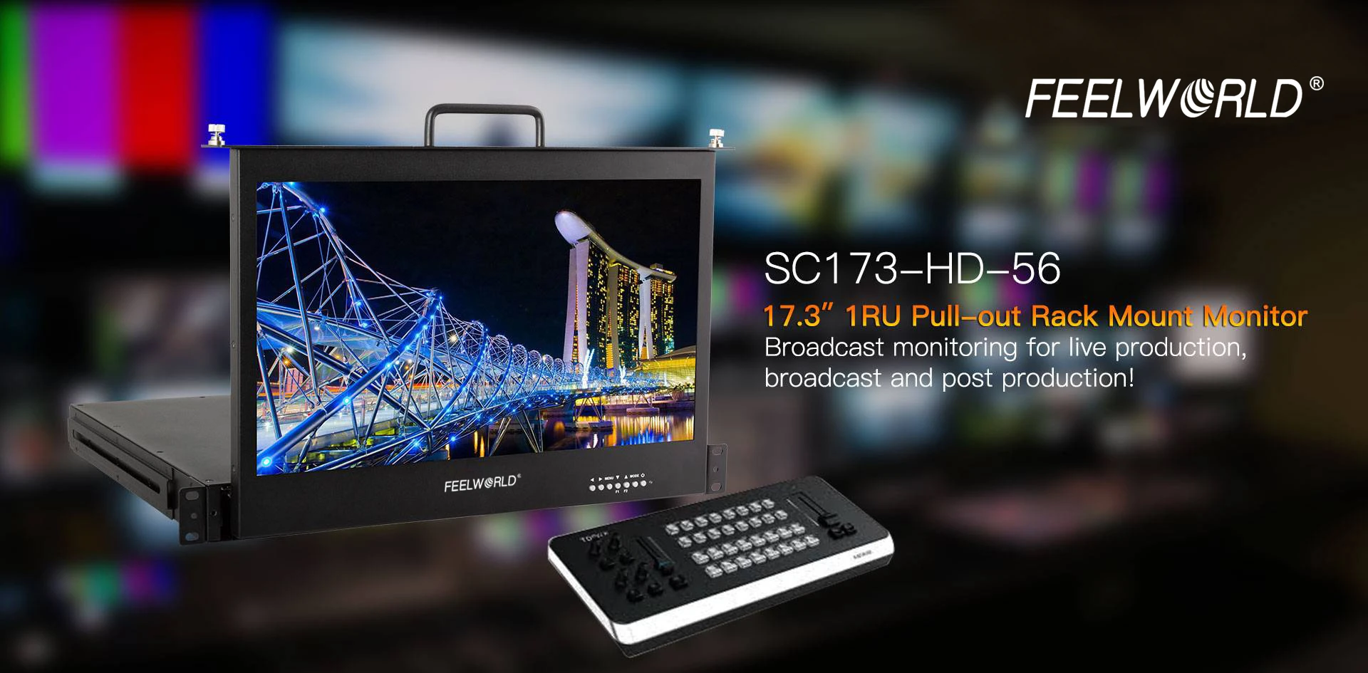 Comprar Feelworld-Monitor de Director de transmisión de 17,3 pulgadas, SC173-9HD-56, 1RU, montaje en estante extraíble, Full HD1920x1080