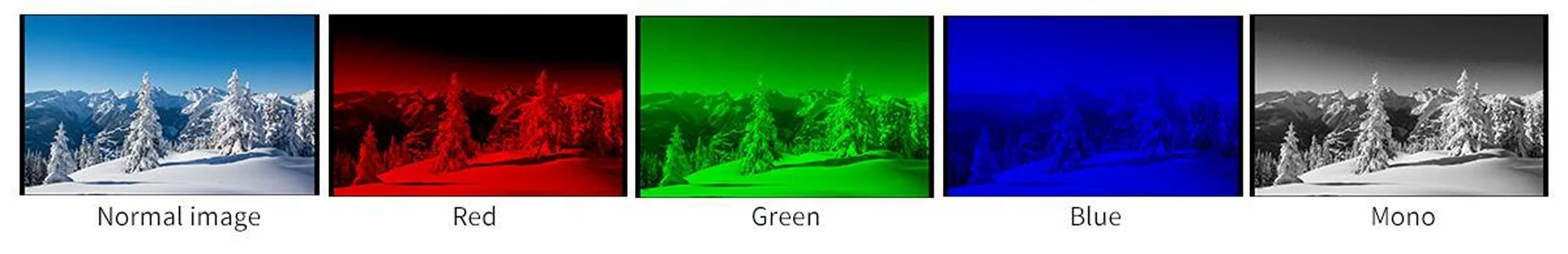 Check Field es una función de asistente para ajustar la configuración del color de la cámara. En el modo de campo de verificación, puede usar píxeles rojos, verdes, azules o Mono para generar la imagen, ya que el tono y la saturación se pueden ajustar de manera más rápida y precisa en este entorno.