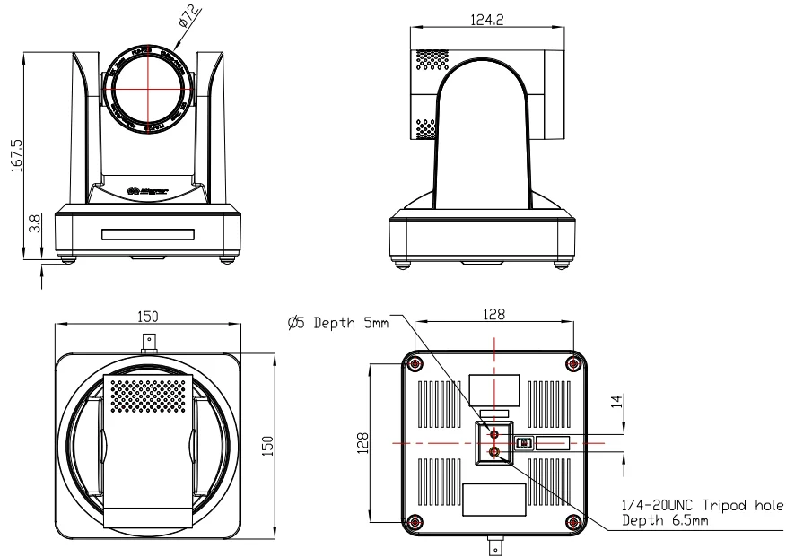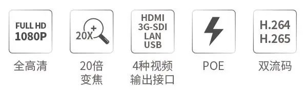Múltiples opciones de montajeEl POE20X se puede instalar en cualquier pared/techo/trípode para capturar primeros planos para cada producción de vídeo en directo.Nota: Soporte no incluido