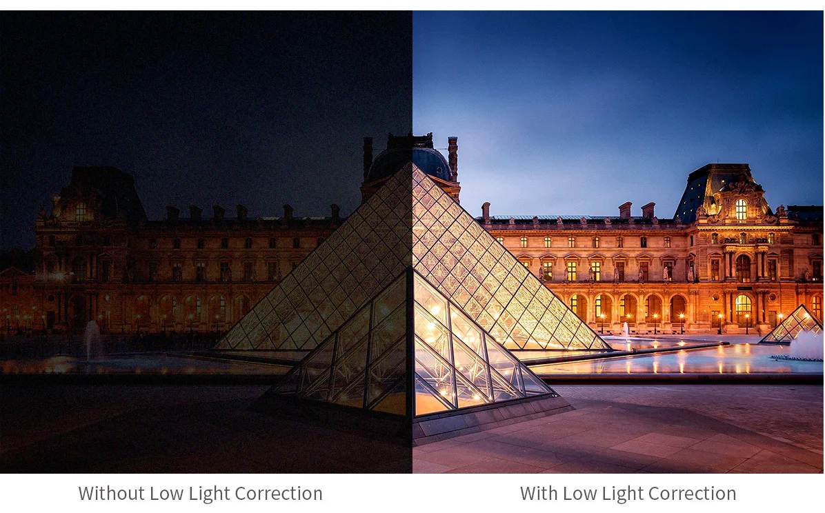 Corrección de luz bajaLa tecnología de rendimiento con poca luz puede ajustar automáticamente el nivel de brillo. Cada momento se puede ver claramente incluso en condiciones oscuras o de luz de fondo. El excelente rendimiento y la calidad de video hacen que la grabación en vivo sea extremadamente conveniente.