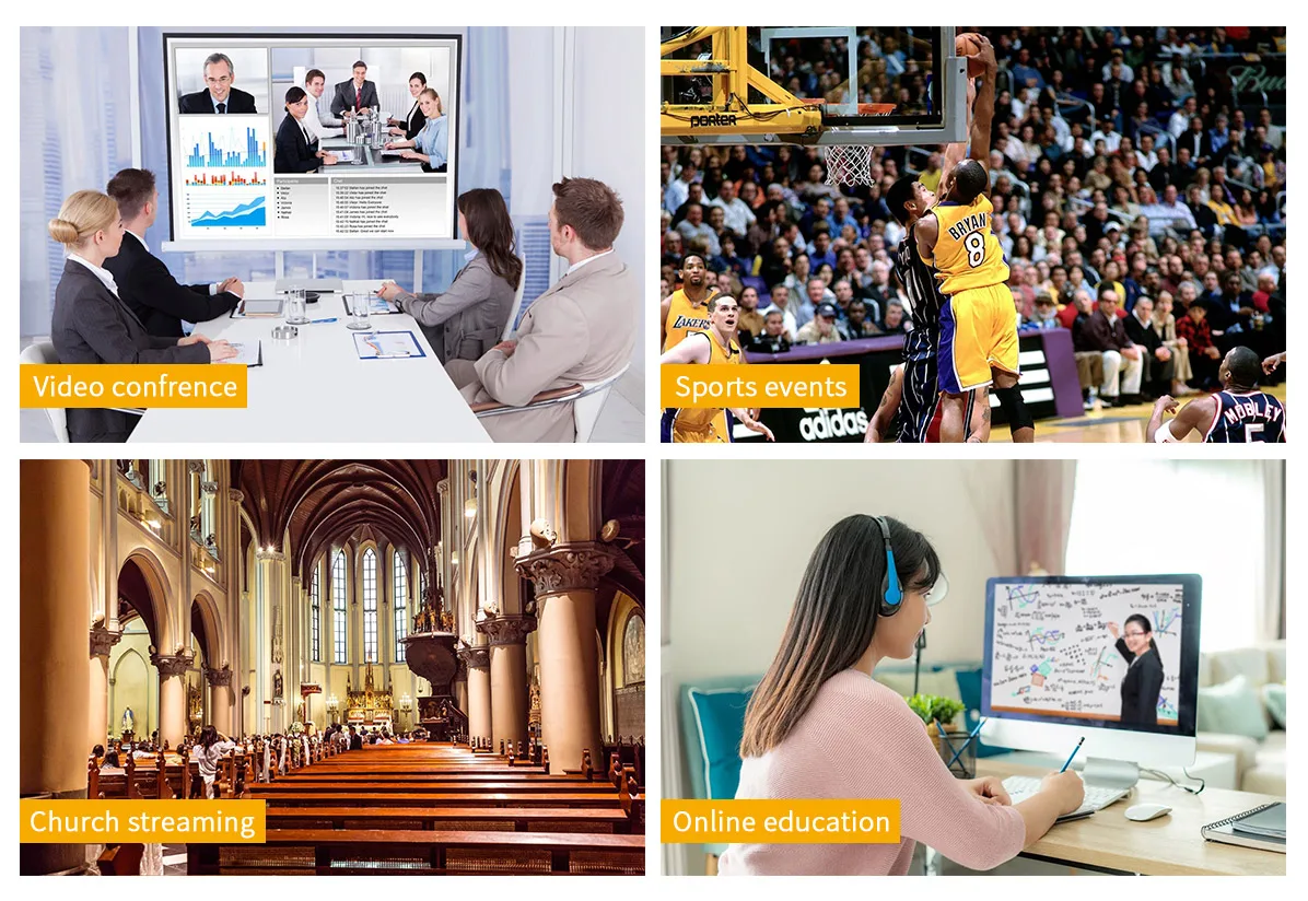 Aplicación múltiplePOE20X es ampliamente utilizado para transmisión de iglesias, videoconferencias, eventos deportivos, educación en línea, etc.