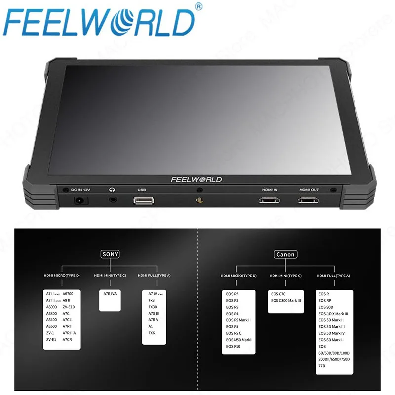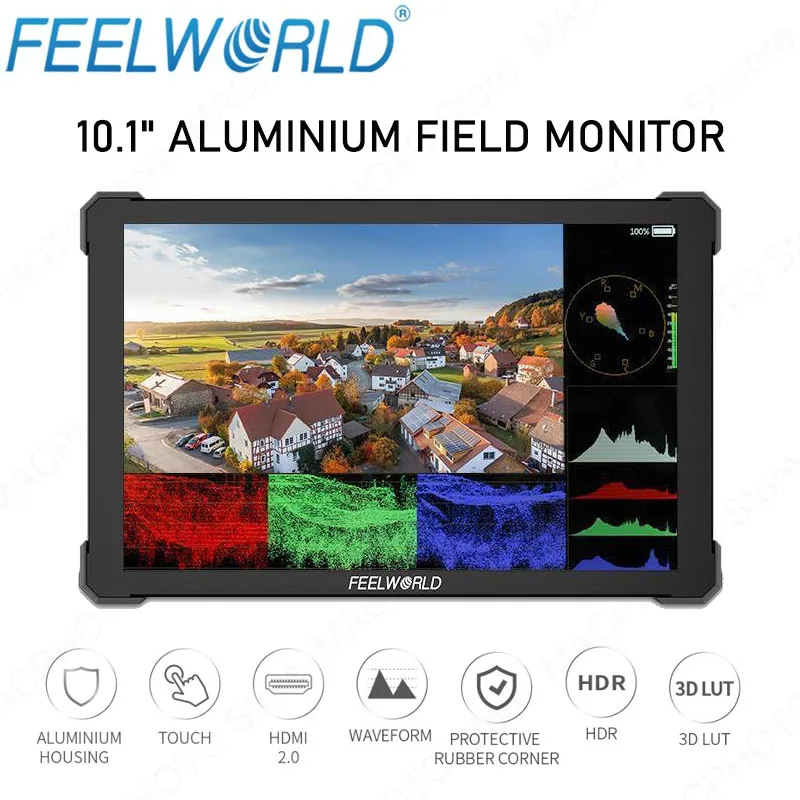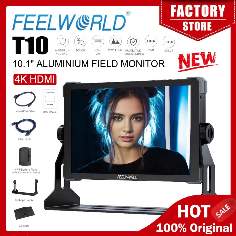 Comprar FEELWORLD T10 Monitor de 10,1 pulgadas pantalla táctil cámara DSLR de aluminio Monitor de campo 4K HDMI NP-F instalación externa y Kit de alimentación