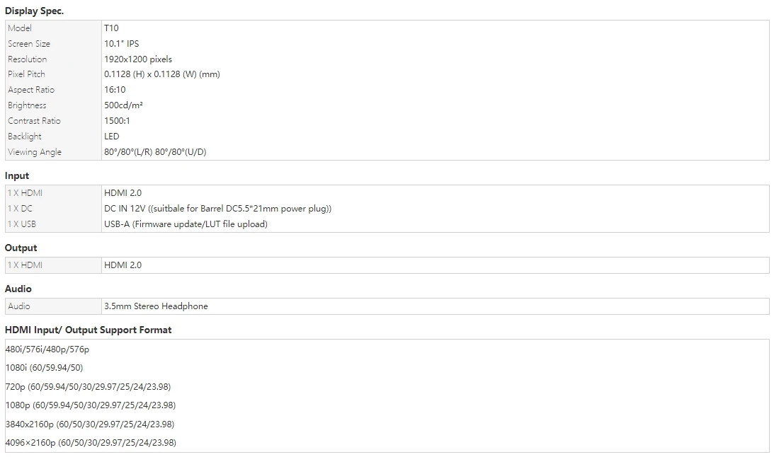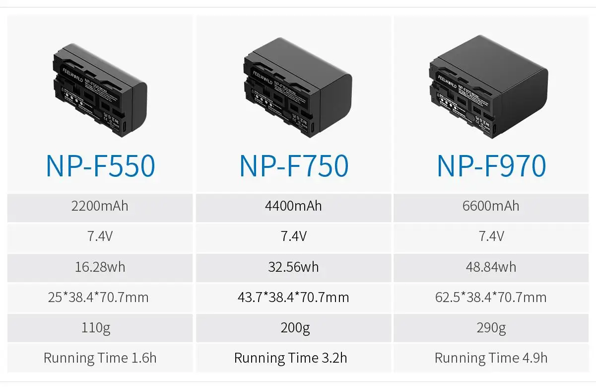 The power consumption of T10 is 10W, and you can choose a suitable FEELWORLD NP-F battery to power it according to your shooting needs.