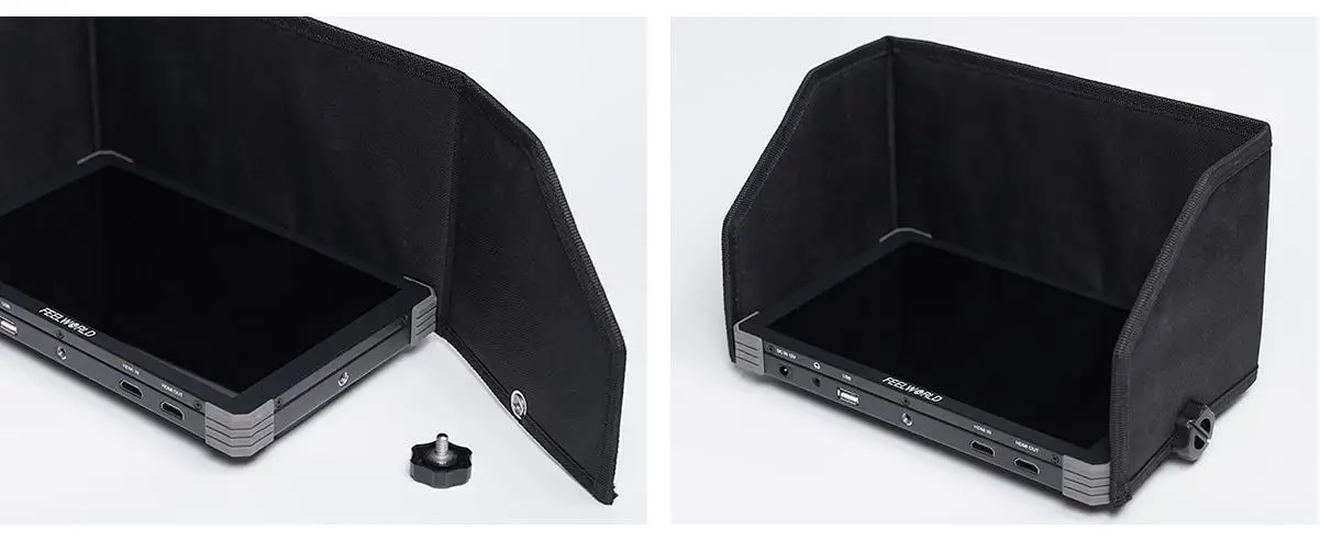 T10 attached with a sunshade, which allows the photographer to focus more on the video and avoid the interference of strong light, providing a better visual experience. The installation process is simple and fast, which is very suitable for outdoor shooting.