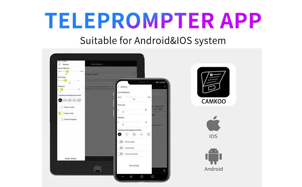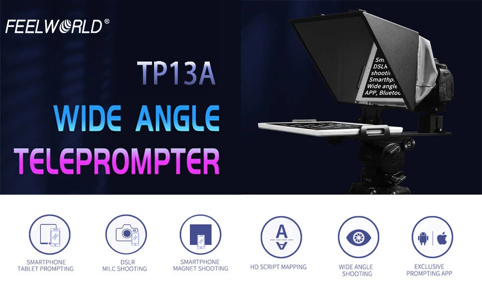 Feelworld TP13A Teleprompter allows you to clearly read scrolling text while looking directly into the camera, perfect for vlog, live broadcast, online class, video recording, interviews,news. No need to recite the script!