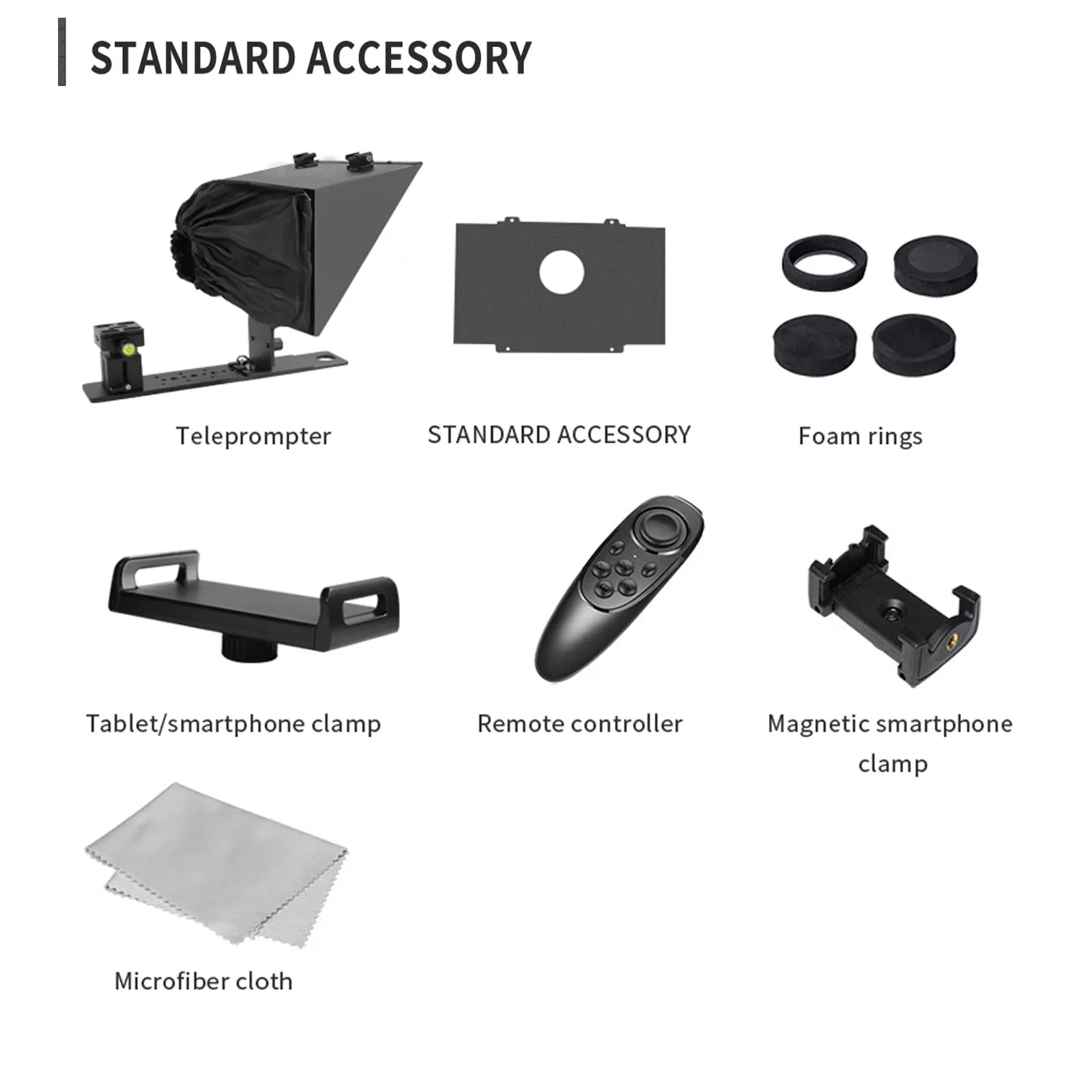 TP13A teleprompter universally supports flexible tablet smartphone prompting+ DSLR shooting.